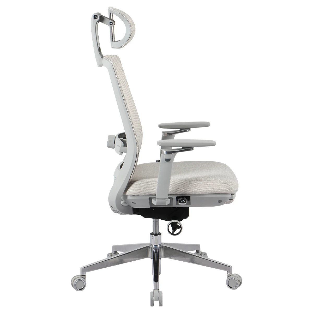 Regulowany zagłówek w fotelu biurowym to istotna funkcja, która znacząco zwiększa komfort i ergonomię siedzenia. Spacetronik Albert został wyposażony w zagłówek regulowany aż w 3 zakresach, co pozwala na dostosowanie podparcia głowy i szyi do indywidualnych potrzeb każdego użytkownika, co pomaga w redukcji napięcia mięśniowego oraz zapobiega bólom w okolicach karku. W tym fotelu możemy dostosować zarówno wysokość zagłówka jak i jego kąt nachylenia.