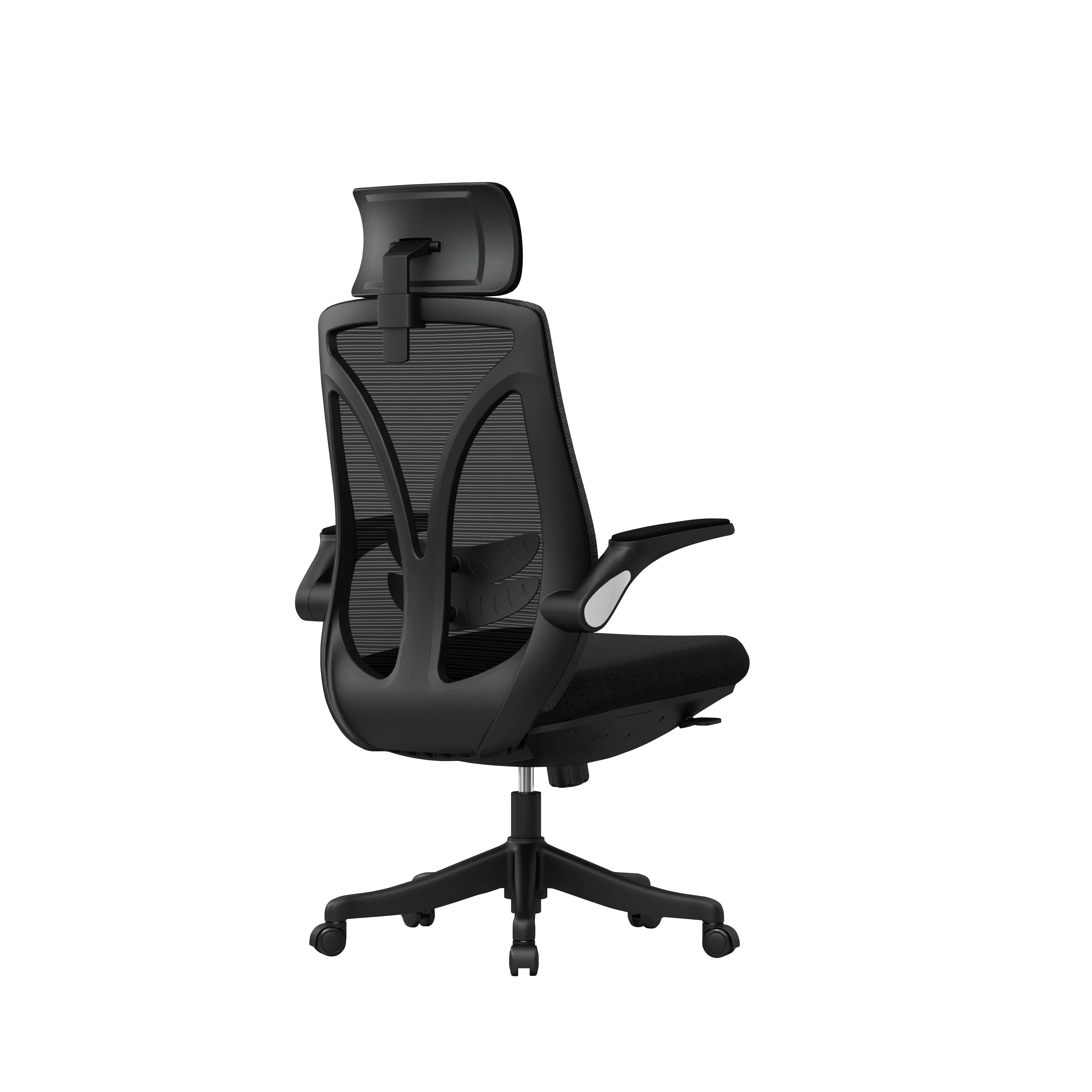 Fotel Spacetronik ARIAN-10 został wyposażony w regulowany zagłówek oraz składane podłokietniki, które można dostosować do swoich indywidualnych potrzeb. Zagłówek można regulować w zakresie 7 cm oraz pochylać pod kątem 30°, co zapewnia dodatkowe wsparcie dla szyi i głowy. Składane podłokietniki pozwalają na łatwe przesunięcie krzesła pod biurko lub zwiększenie przestrzeni roboczej, gdy podłokietniki nie są potrzebne.
