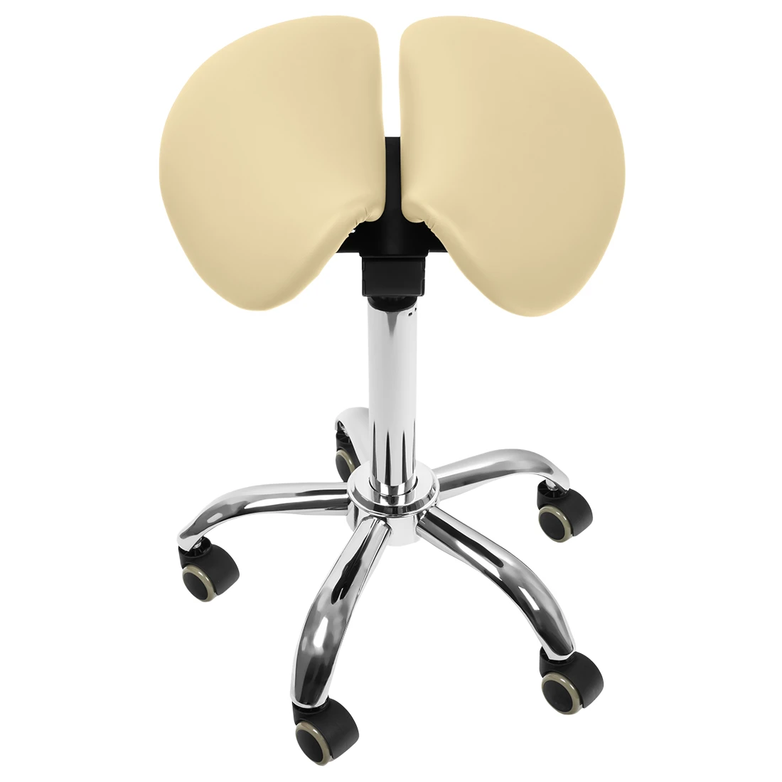 Nacisk wywoływany siedzeniem na klasycznych krzesłach źle wpływa na pracę miednicy, kości ogonowej oraz okolic narządów płciowych. Powyższe problemy mogą przyczynić się do wewnętrznych problemów zdrowotnych. Poprzez tendencyjne pochylanie się na krześle, plecy nie są proste, a to powoduje problemy z plecami. Na jednoczęściowym siodle nacisk na otwór miednicy jest jeszcze silniejszy. Odruchowo staramy się tego uniknąć, odchylając miednicę do tyłu i w rezultacie uzyskujemy zgarbioną pozycję. Jeśli ktoś już ma problemy z bólem pleców, garbienie może okazać się bolesne a rezultatem może być drętwienie spowodowane zbyt dużym naciskiem. Podczas siedzenia na dwuczęściowym krześle siodłowym, nacisk wywierany jest na kości odpowiedzialne za siedzenie, w rezultacie odciążamy tkanki miękkie, dzięki czemu możemy dłużej siedzieć w wygodnej pozycji, a krążenie pozostaje niezakłócone.