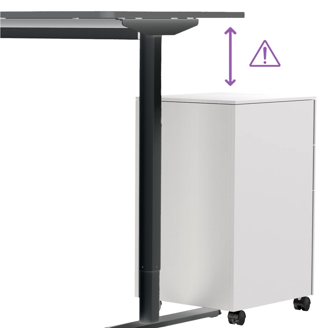Innowacyjny system antykolizyjny zapewnia bezpieczeństwo podczas regulacji wysokości. Mechanizm wykrywa przeszkody na drodze ruchu blatu i automatycznie odwraca jego kierunek, zapobiegając uszkodzeniom. Jest to idealne rozwiązanie do dynamicznego środowiska pracy, gdzie ochrona sprzętu i przestrzeni jest kluczowa.