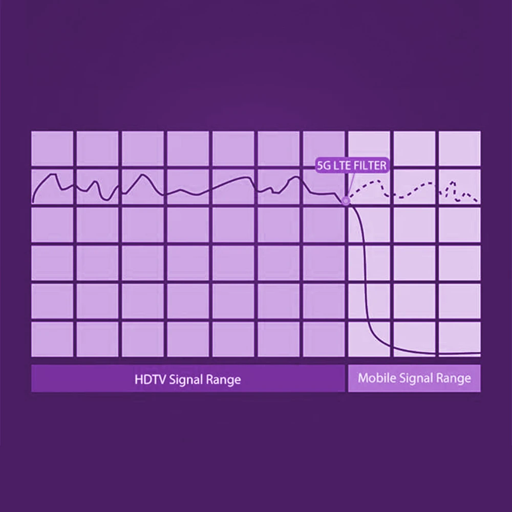 - Blokowanie LTE: Filtr LTE jest zaprojektowany tak, aby przepuszczał tylko sygnały w zakresie częstotliwości używanych przez telewizję naziemną, a blokował sygnały LTE. W tym wypadku częśtotliwość 5-694MHz