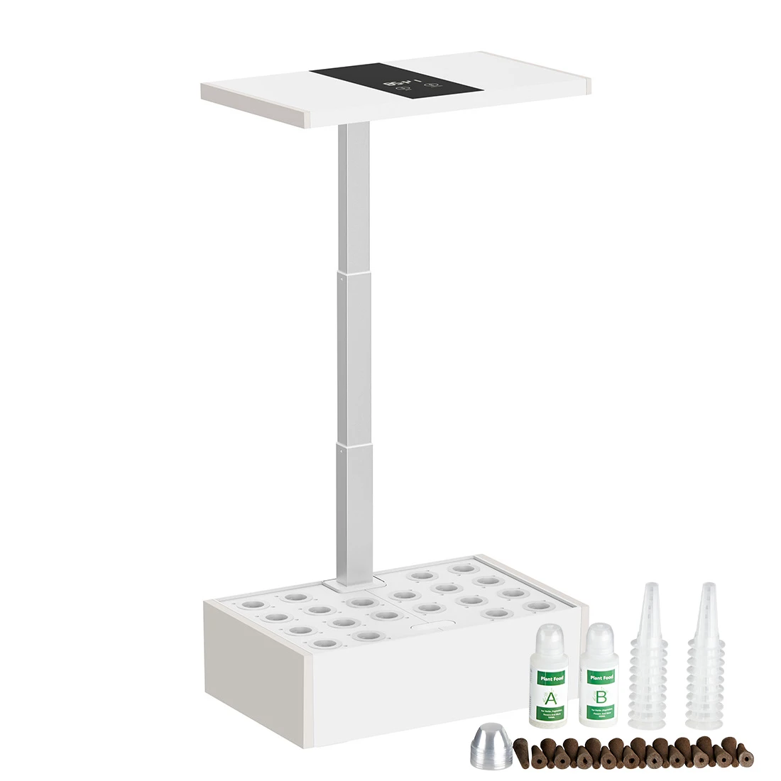 - Wyposażenie: 4 wymienne tacki na nasionka (10 otworów x2, 6 otworów x2), 20 Gąbeczek do nasion, 40 różnego typu pojemników na nasionka (po 20 każdego typu), A & B suplementy, zasilacz.