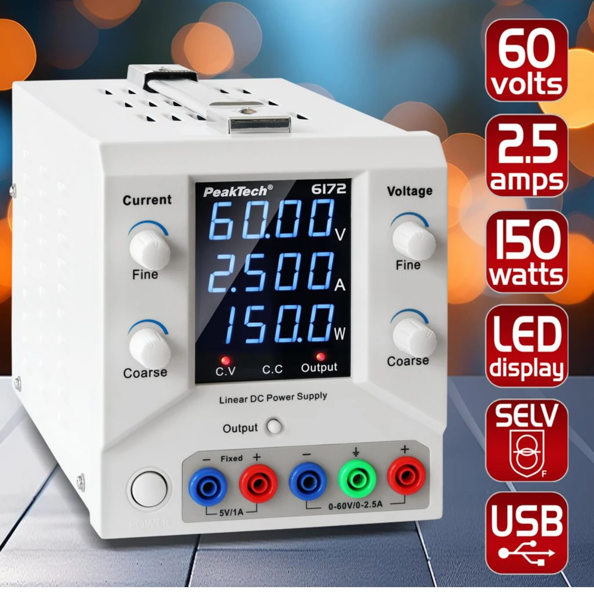 Zasilacz laboratoryjny 60V 2,5A DC PeakTech 6172 USB