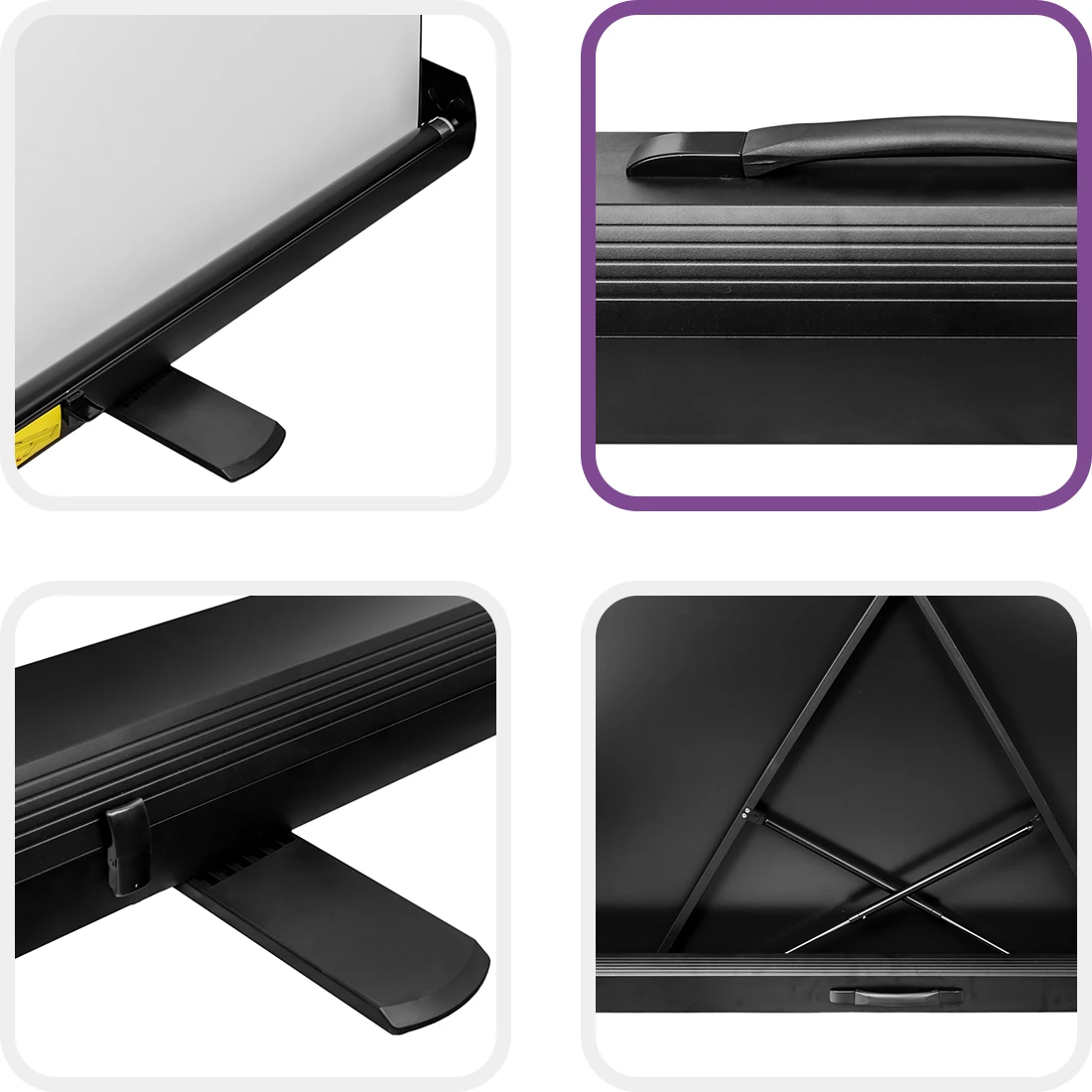 Nasz podłogowy ekran projekcyjny jest niezwykle łatwy do rozstawienia. 10 sekund- tylko tyle zajmuje jego rozłożenie! Dzięki solidnej pokrywie z rączką, można go z łatwością przenosić i ustawiać w dowolnym miejscu. Gazowo nożycowa rama umożliwia szybkie i płynne rozwinięcie ekranu z podłogi, bez potrzeby montażu.