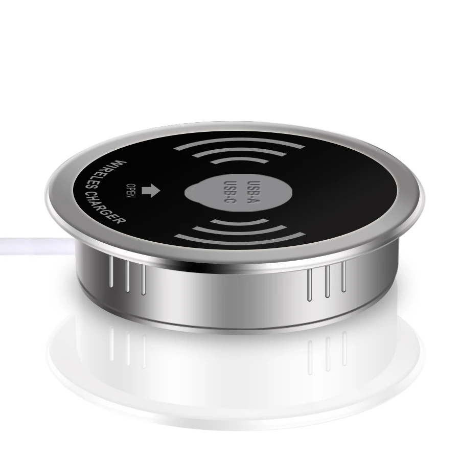 Bezprzewodowa ładowarka indukcyjna Spacetronik SPM-04 do montażu w blat stołu z wejściem USB-A i USB-C