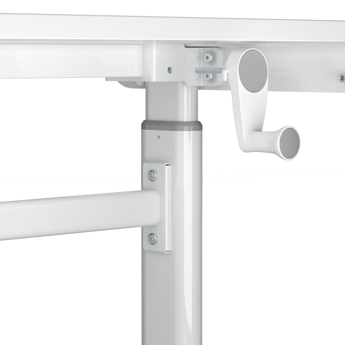 Dzieci mogą łatwo dostosować wysokość biurka do swoich potrzeb, korzystając z lekkiej i płynnej ręcznej korby, która nie jest montowana na stałe - można ją wyjąć zaraz po dostosowaniu wysokości. Wysokość blatu jest regulowana w zakresie od 54 cm do 76 cm. W praktyce to oznacza, że użytkownikiem biurka może być zarówno sześciolatek, jak i uczeń szkoły podstawowej.
