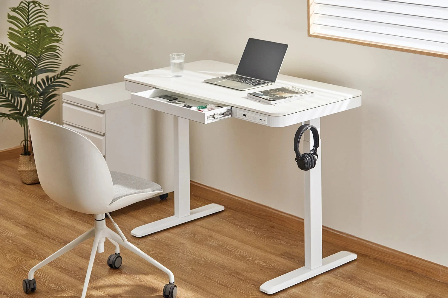 Biurko wyposażone jest w zaawansowany dotykowy kontroler, który umożliwia zapamiętanie ulubionych ustawień wysokości. Dzięki temu, jednym dotknięciem można szybko przestawić biurko do wcześniej zapamiętanych pozycji, co zwiększa wygodę użytkowania. Dodatkowo, kontroler posiada jedno wyjście USB-C, oraz jedno wyjście USB-A, co ułatwia ładowanie urządzeń mobilnych bez potrzeby korzystania z dodatkowych ładowarek. To rozwiązanie pozwala na utrzymanie porządku na blacie i łatwy dostęp do źródła zasilania dla wszystkich potrzebnych urządzeń.
