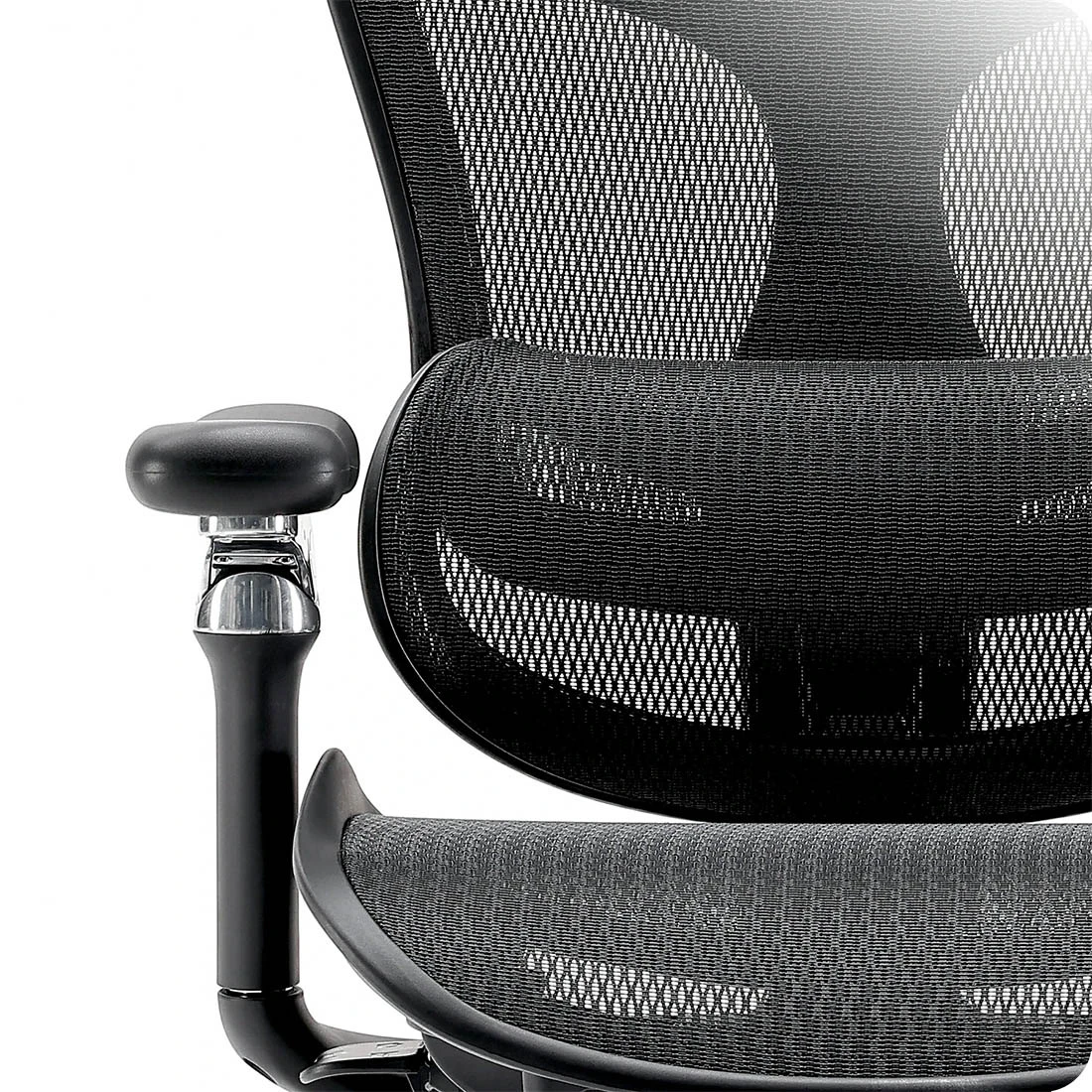 - Materiał: Siatkowe oparcie i siedzisko z miękkimi podłokietnikami pokrytymi powłoką PU,