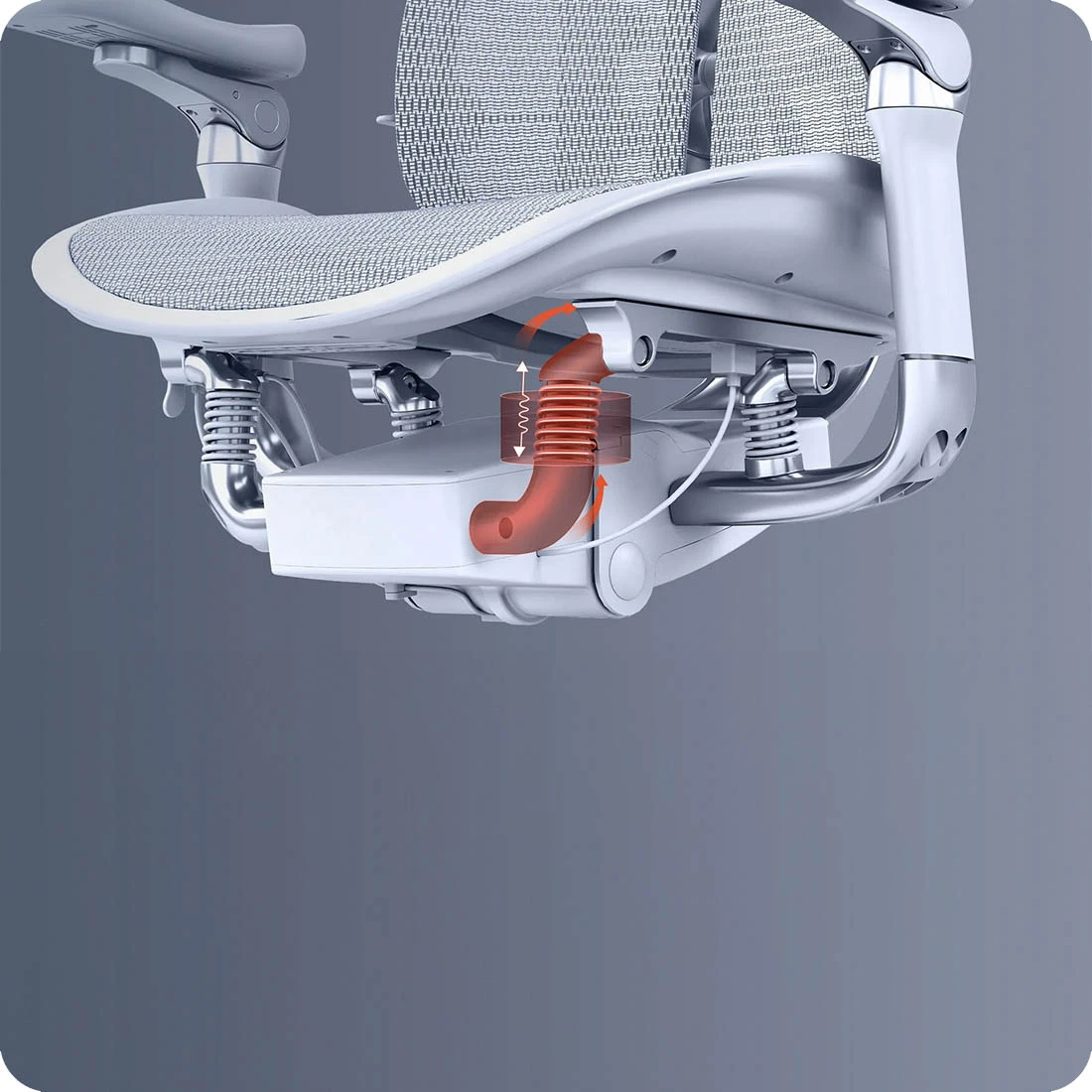 Fotel ergonomiczny Spacetronik SPRINGLE 66 został wyposażony w zaawansowany system zawieszenia w siedzisku. Składa się on z 4 skutecznie pochłaniających wstrząsy sprężyn. Skutecznie niwelują one napięcie podczas siedzenia. System zawieszenia dostosowuje się dynamicznie na bieżąco do każdej zmiany pozycji, dzięki czemu dba o Twój stały komfort. Wysokość siedziska będzie się więc cały czas delikatnie dopasowywać, tak byś mógł automatycznie przyjąć wygodną pozycję.