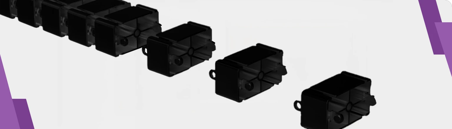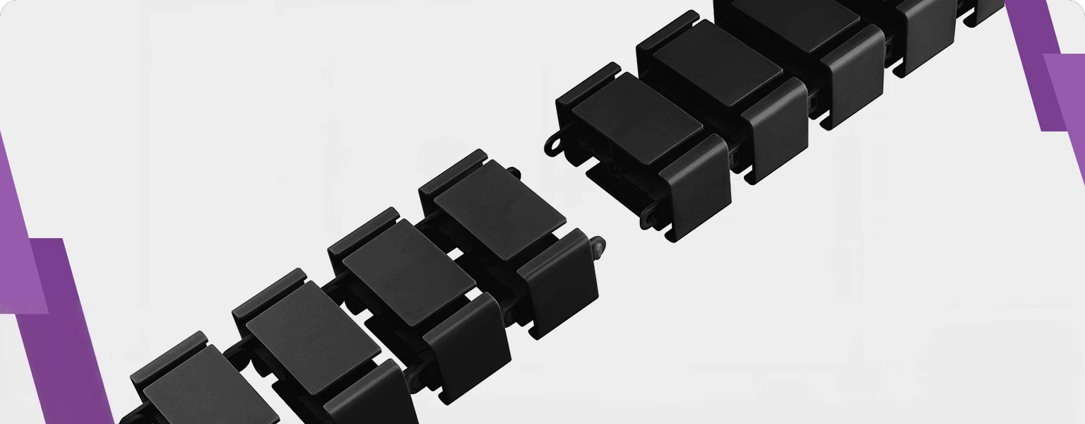 Zatrzaskowe bloki łączą się ze sobą, dając łączną długość 130 cm. Prowadnica kablowa wyposażona jest z jednej strony w element montażowy (wymagane użycie wkrętów — brak w zestawie) oraz stopę, która spoczywa na podłodze. Kręgosłup można dowolnie skracać lub wydłużać poprzez dodawanie/usuwanie bloków. Rozmiar pojedynczego bloku to 68×36 mm. Maskownica na kable posiada cztery tunele, które umożliwiają dowolny podział przewodów. Umieszczanie kabli jest bardzo proste — wystarczy odgiąć delikatnie jedno skrzydło bloku i umieścić wewnątrz przewód.