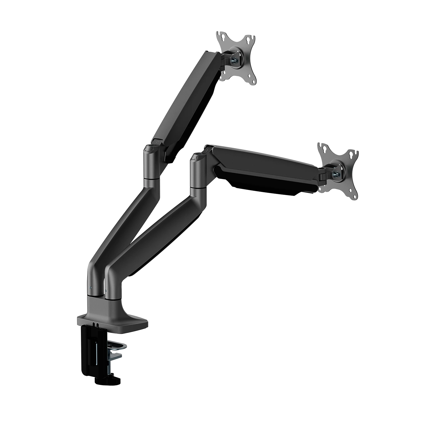 Uchwyt do monitorów Spacetronik SPA-S120B został wykonany z połączenia stali, aluminium i tworzywa sztucznego. Z uwagi na to zapewnia Ci udźwig maksymalny, aż do 16 kilogramów (na ekran). Co więcej, możesz na nim zawiesić również monitor zakrzywiony (do 13 kilogramów na ekran). Dzięki temu nie musisz się ograniczać! Dopasujesz do niego większość monitorów o przekątnej 17"-35". Uchwyt jest kompatybilny ze standardem VESA (75×75,100×100). Ramię na 2 monitory Spacetronik SPA-S120B zostało pomalowane za pomocą metody proszkowej. Dzięki temu zwiększyła się jego wytrzymałość na korozję. Natomiast dzięki mechanizmowi sprężyny gazowej bez problemu wyregulujesz swój uchwyt pod odpowiedni ciężar ekranu.
