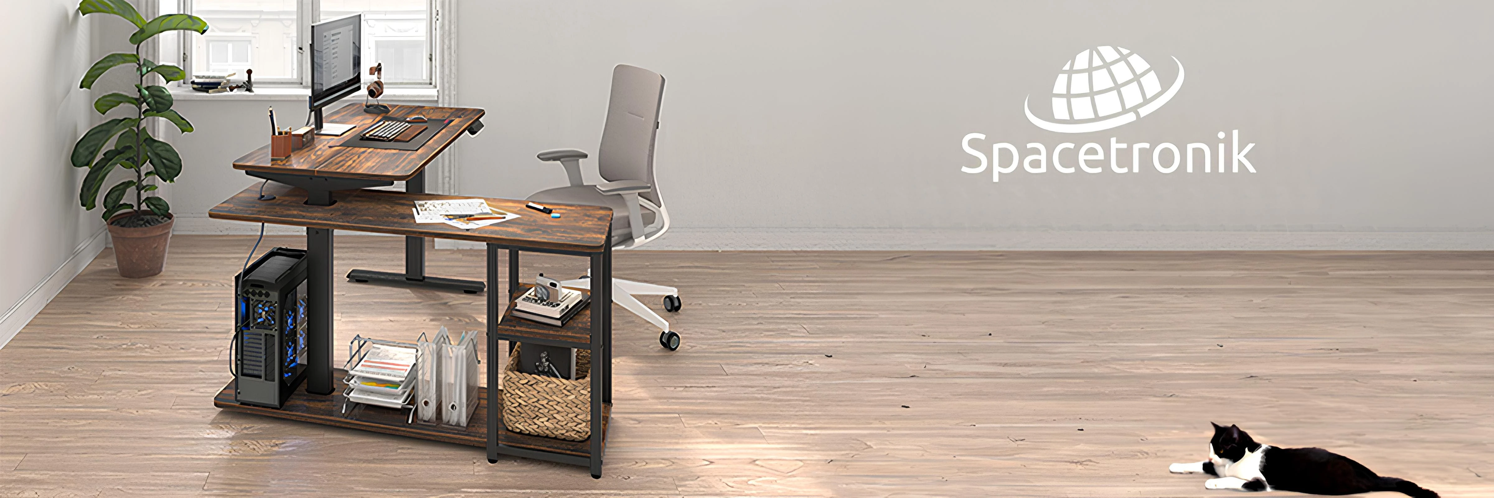 Regulowane, narożnikowe biurko elektryczne Loris SPE-L120WW