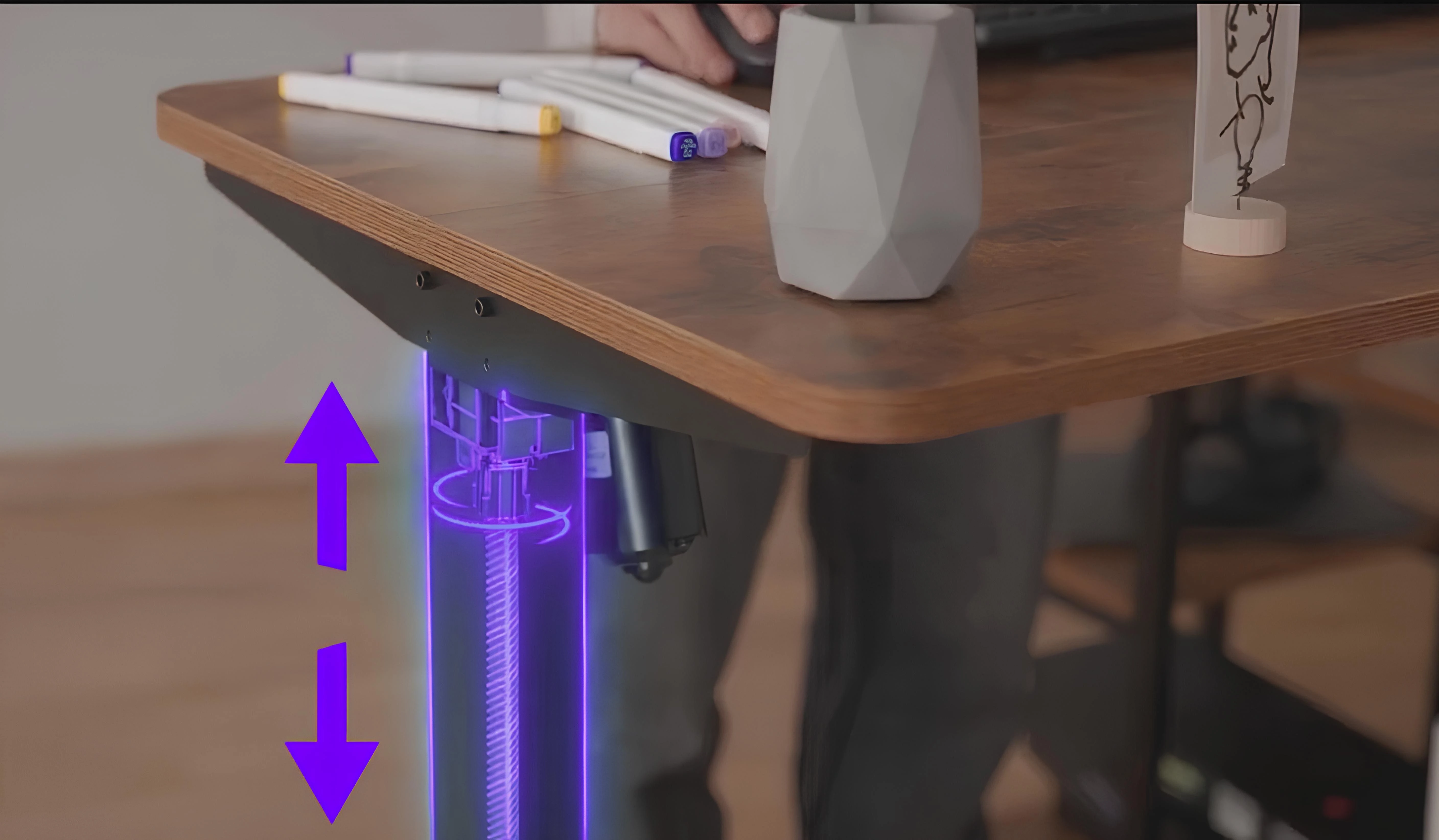 -System antykolizyjny - nowoczesny system wykrywania kolizji. Zatrzyma zmianę pozycji biurka, gdy tylko wykryje na swojej drodze przeszkodę. Dzięki temu możesz mieć pewność, że nie uderzysz przypadkowo swojego dziecka bądź też zwierzaka. Możesz zmieniać pozycję swojego biurka bez obaw.