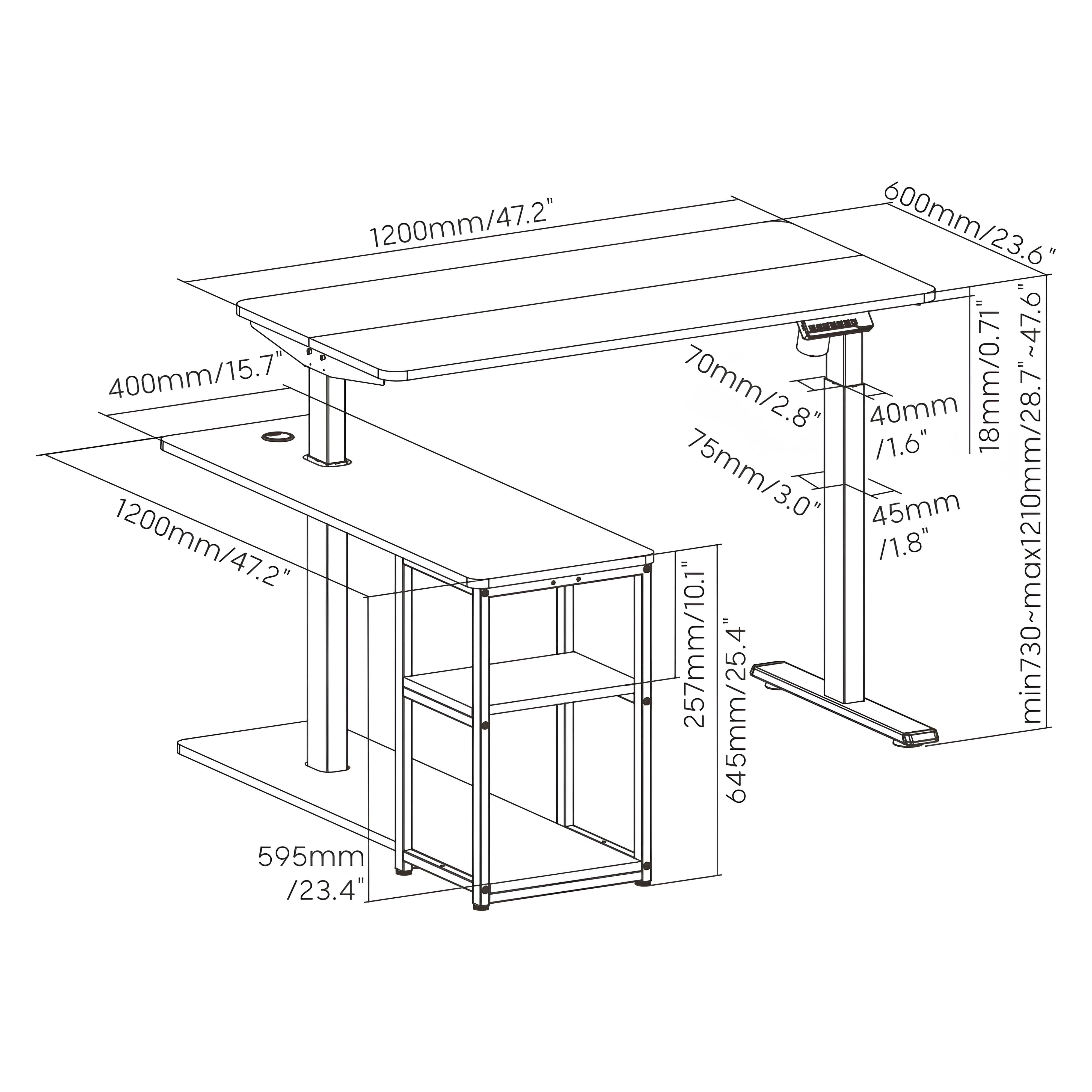 Wysokość: 73~121 cm, 205cm x 60cm (układ prosty) / 136cm×120cm (układ narożny)