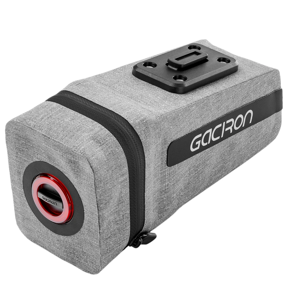 Torba rowerowa z inteligentną lampką tylną Gaciron BIRD NEST 200 jasnoszara, pojemność 1.4 l