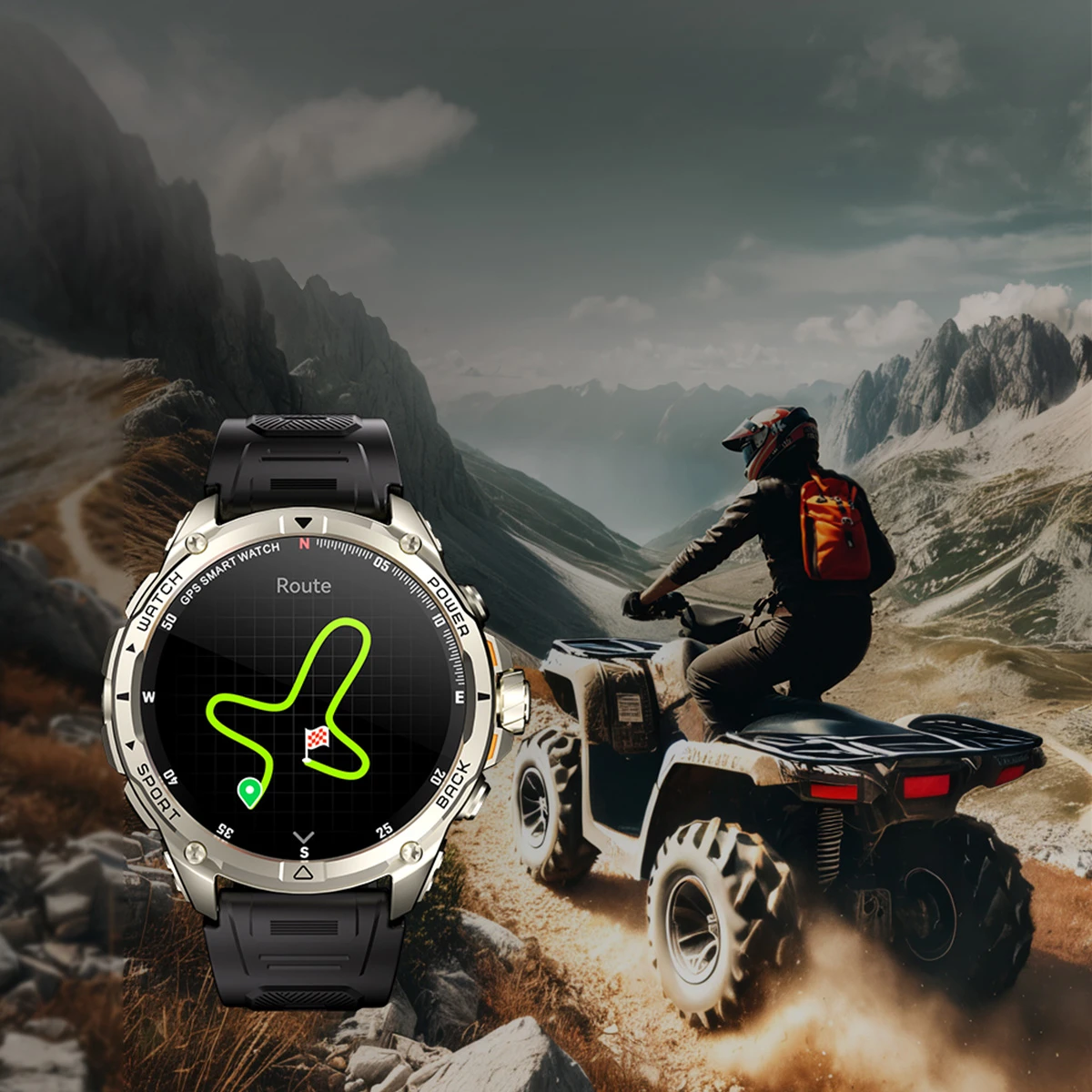 W celu jak najdokładniejszego określenia Twojej lokalizacji smartwatch został wyposażony w aż dwa pasma GPS. Dodatkowo wspiera również systemy pozycjonujące z aż 6 satelitów. To sprawia, że ten model zegarka będzie w stanie bardzo dokładnie śledzić Twój trening. Nawet w najciężej dostępnych miejscach. Co więcej, funkcja powrotu pozwoli Ci w łatwy sposób odnaleźć trasę powrotną. Dzięki temu zdecydowanie zminimalizujesz ryzyko zgubienia się w trakcie spaceru lub treningu. Jednak by wesprzeć Cię, nawet bardziej smartwatch KUMI U5 Pro został wyposażony w precyzyjny i bardzo wygodny kompas. Oprócz wskazywania kierunków świata mierzy on również wysokość, jak i ciśnienie atmosferyczne. Dzięki tym funkcjom będziesz miał wszystkie najbardziej potrzebne informacje w podróży zawsze na wyciągnięcie ręki!
