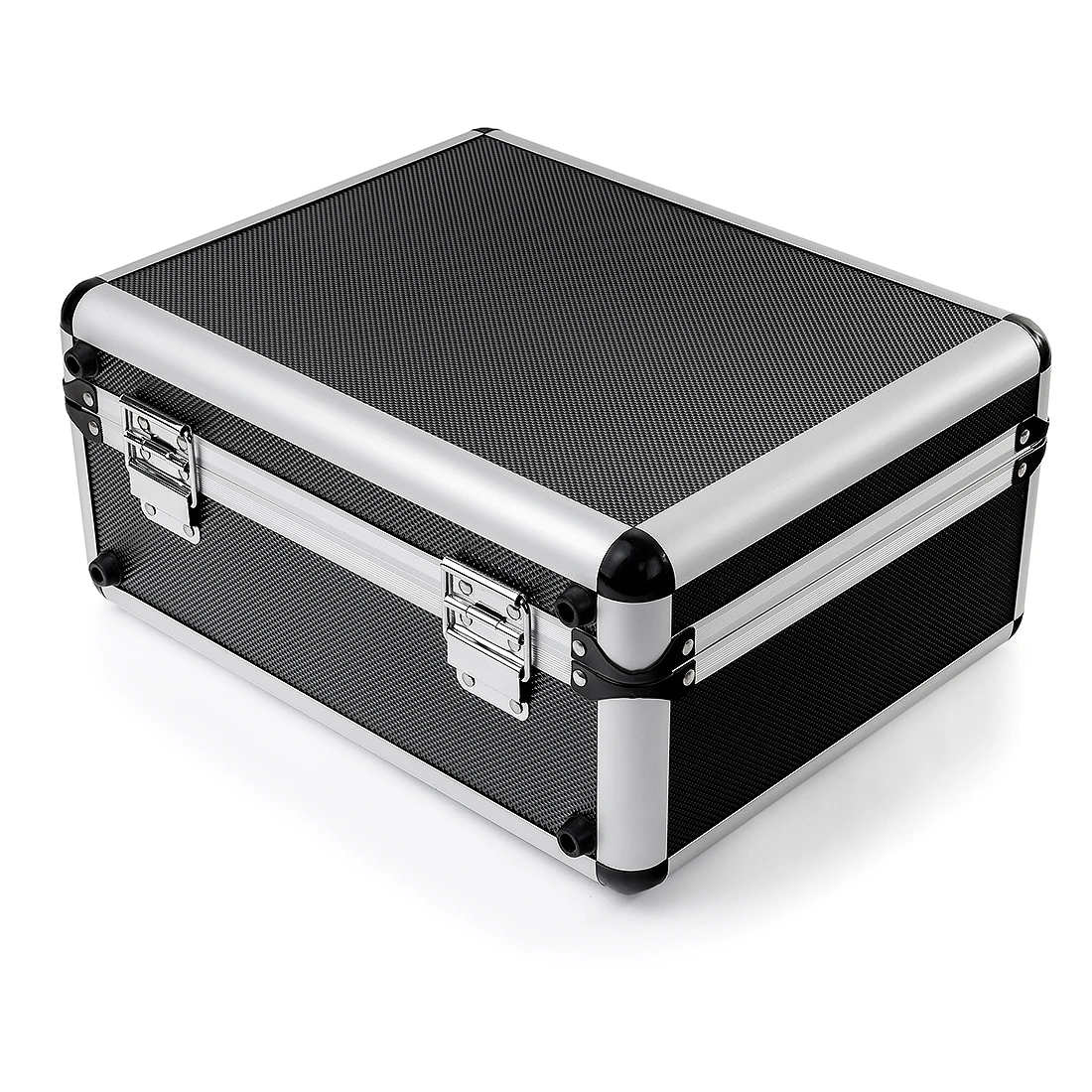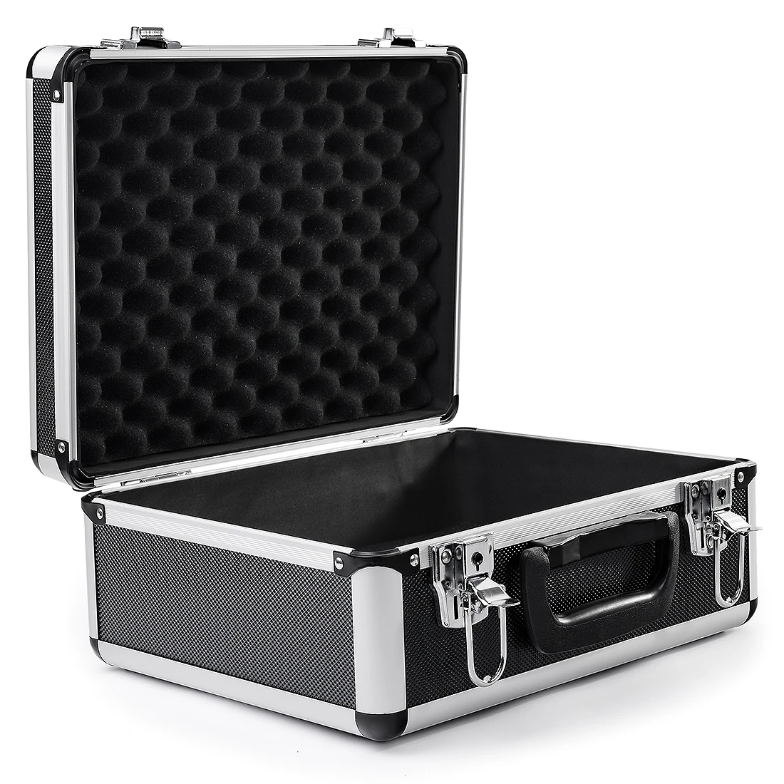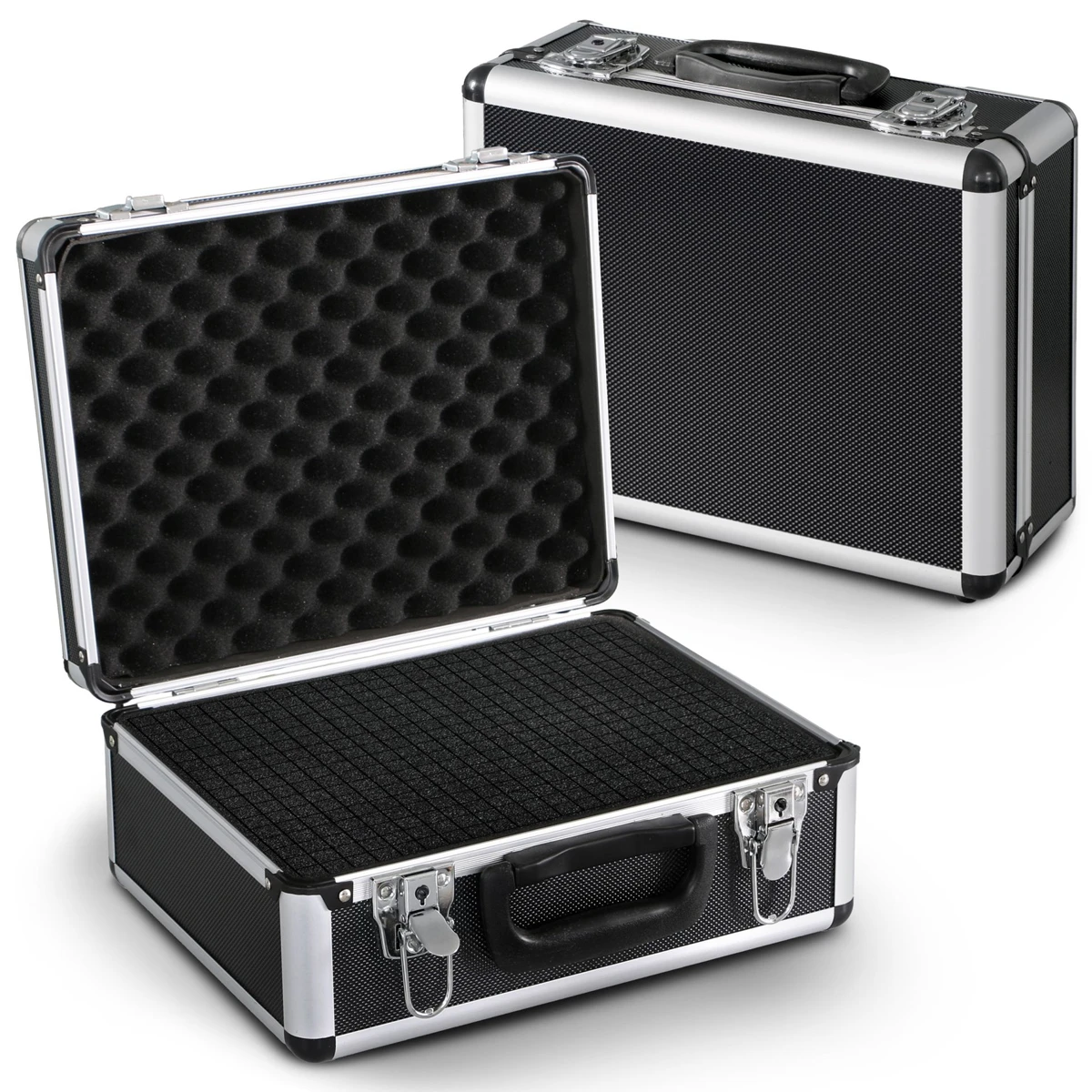 W zamykanym na zamek uniwersalnym futerale można bezpiecznie przechowywać wrażliwe urządzenia elektroniczne podczas podróży i w drodze do pracy. W celu uniwersalnego dopasowania tych wytrzymałych futerałów do danego sprzętu, każdy futerał jest wyściełany wkładką z pianki o grubości 1 cm i dodatkowo wyposażony w dwie wyjmowane sześcienne wkładki z pianki o grubości 3 cm, które można łatwo dopasować bez użycia dodatkowych narzędzi. Dzięki podwójnemu wycięciu w krawędzi zamykającej, te wysokiej jakości walizki oferują wysoki poziom bezpieczeństwa przed wnikaniem pyłu lub rozprysków wody i dlatego są idealnym towarzyszem do codziennej pracy w terenie.