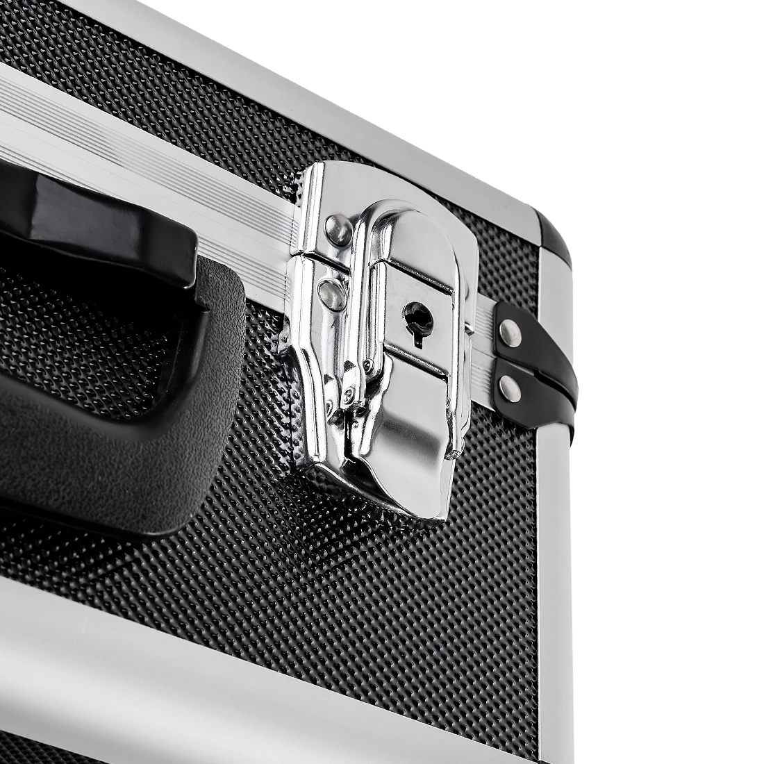 - Zamknięcie na zatrzask: Bezpieczne i łatwe w użyciu zamki zatrzaskowe z kluczykiem zapewniają szybki dostęp do zawartości walizki.