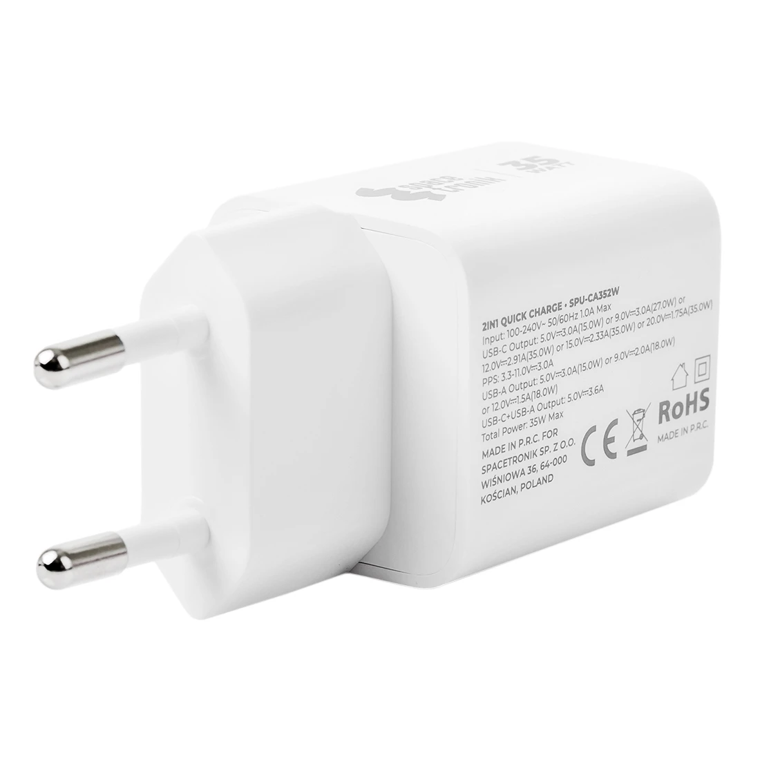 Ładowarka Spacetronik SPU-CA352W 2w1 35W USB-C USB PD Quick 3.6A Biała