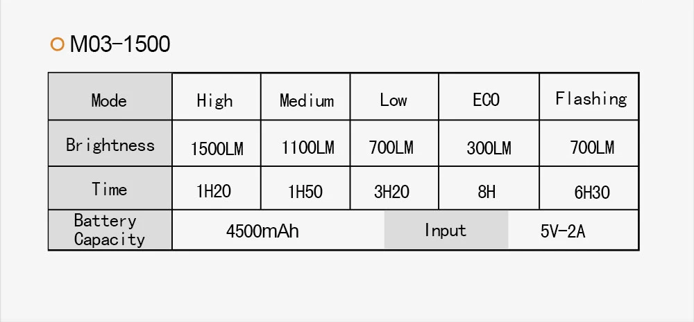 - Mocne światło: 1500 lumenów