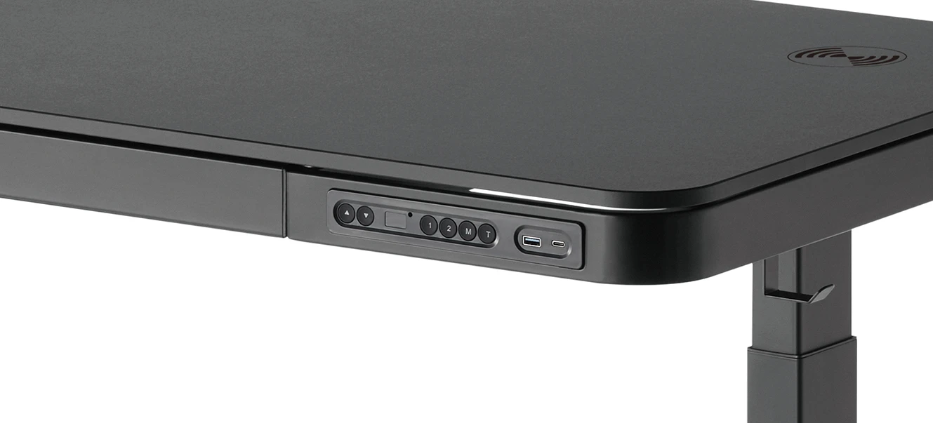 Biurko wyposażone jest w zaawansowany dotykowy kontroler, który umożliwia zapamiętanie ulubionych ustawień wysokości. Dzięki temu, jednym dotknięciem można szybko przestawić biurko do wcześniej zapamiętanych pozycji, co zwiększa wygodę użytkowania. Dodatkowo, kontroler posiada jedno wyjście USB-C, oraz jedno wyjście USB-A, co ułatwia ładowanie urządzeń mobilnych bez potrzeby korzystania z dodatkowych ładowarek. To rozwiązanie pozwala na utrzymanie porządku na blacie i łatwy dostęp do źródła zasilania dla wszystkich potrzebnych urządzeń.