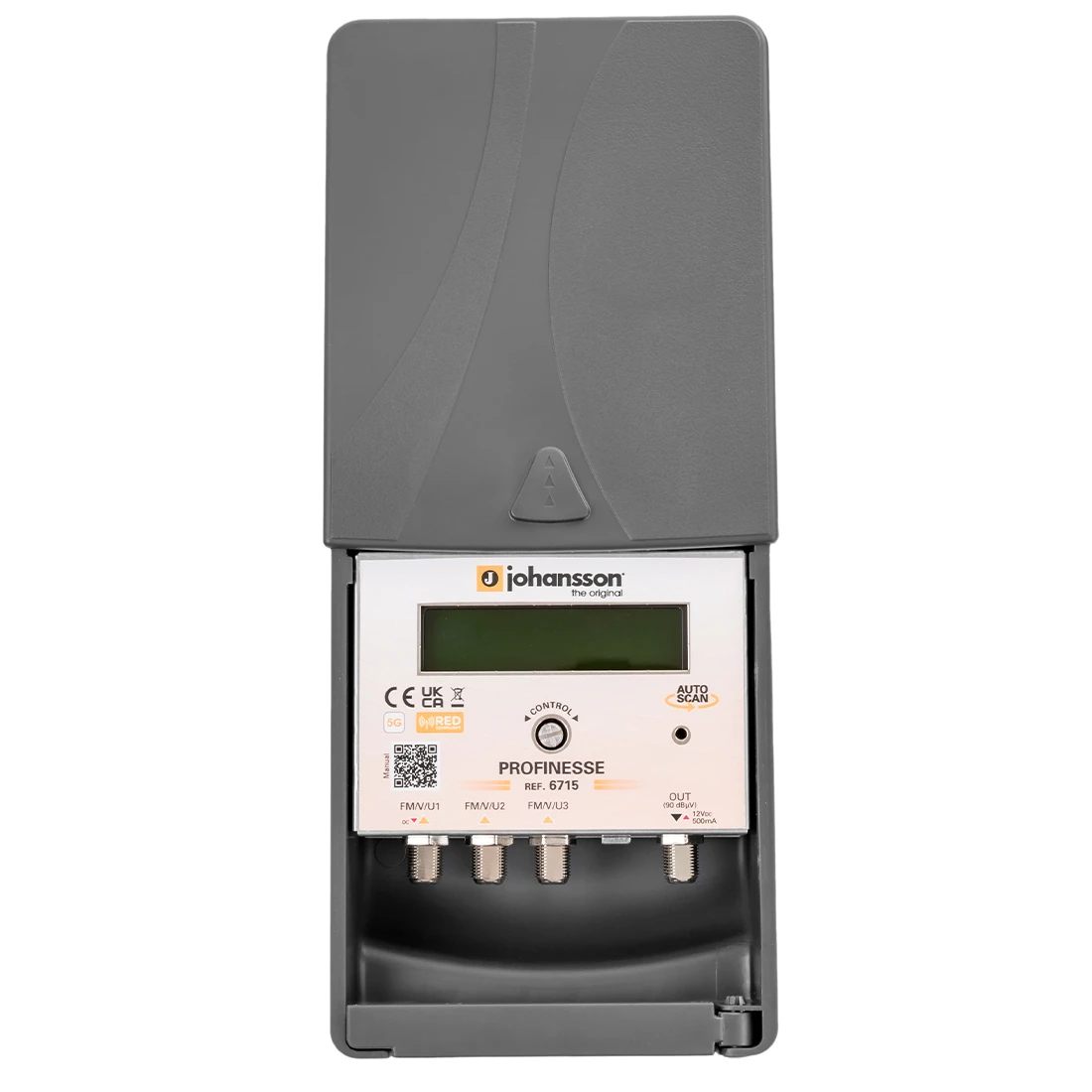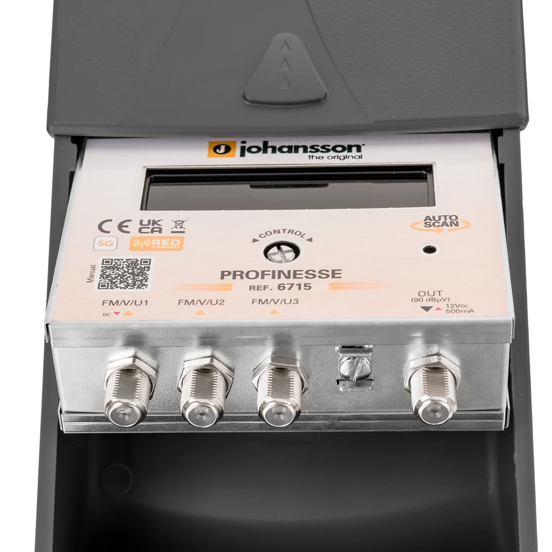 Wzmacniacz Johansson 6715 to urządzenie klasy profesjonalnej, które oferuje obsługę do 32x częstotliwości MUX DVB-T/T2 kanałów i pozwala na indywidualne filtrowanie każdego multipleksu. Dzięki temu rozwiązaniu uzyskujemy stabilny i wyraźny sygnał w każdej instalacji zbiorczej. Największą zaletą jest możliwość zastosowania filtrów o selektywności aż 50 dB, co zapewnia skuteczne odcięcie zakłóceń między kanałami.