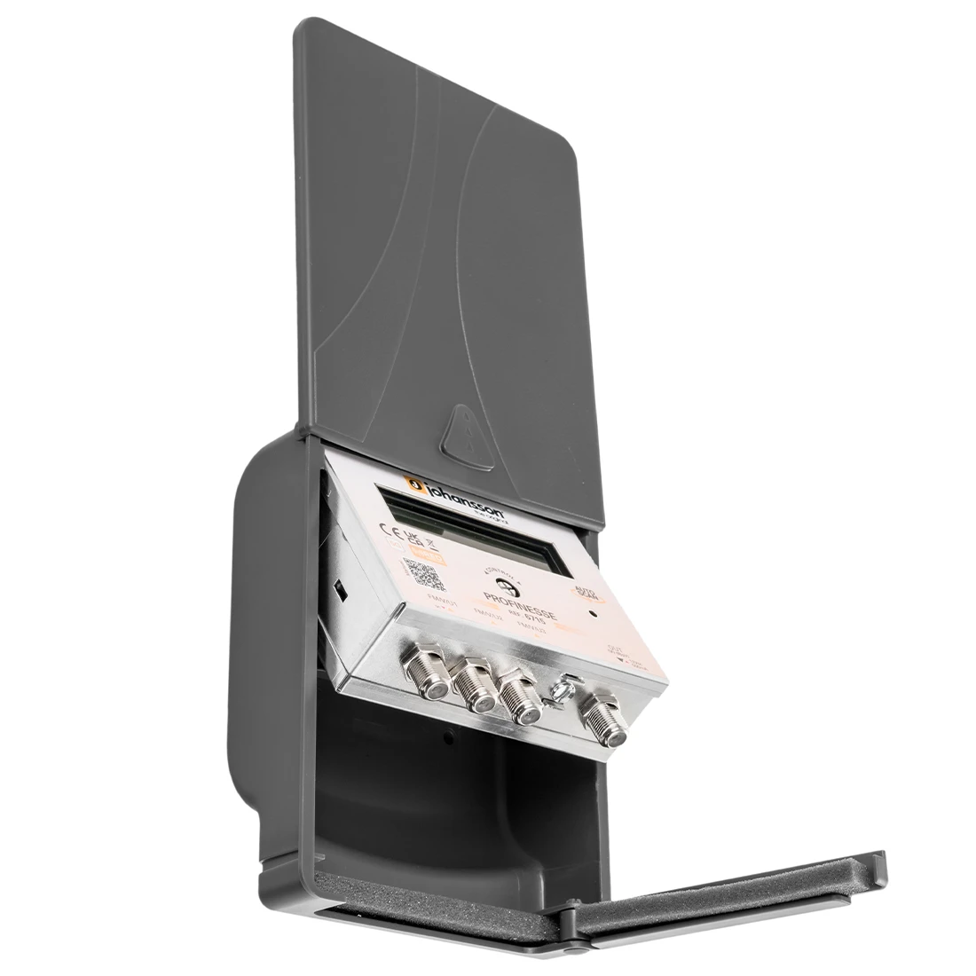 Zestaw wzmacniacza sygnału TV Johansson KIT6715 z obudową masztową i zasilaczem 12V 3 wejścia FM VHF UHF filtr LTE 5G 32 MUXy DVB-T/T2