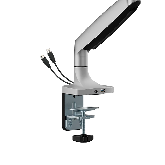 Podstawa uchwytu do monitora Spacetronik SPA-S110S została wyposażona w dwa wejścia USB (USB-A, USB-C). Oznacza to, że z łatwością podłączysz pod nie np. swój telefon. Dzięki temu będziesz mógł np. ładować swojego smartfona bez potrzeby wstawania od komputera. Z uchwytem SPA-S110S możesz mieć pod ręką wszystko to, co jest Ci potrzebne do pracy.