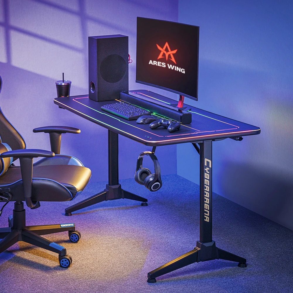 - Dynamiczne podświetlenie RGB: Pełne oświetlenie krawędzi blatu z możliwością zmiany trybu i prędkości efektów świetlnych.