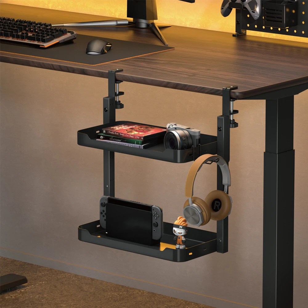 - Uchwyt na słuchawki i akcesoria: Zadbaj o porządek na biurku i szybki dostęp do niezbędnych rzeczy