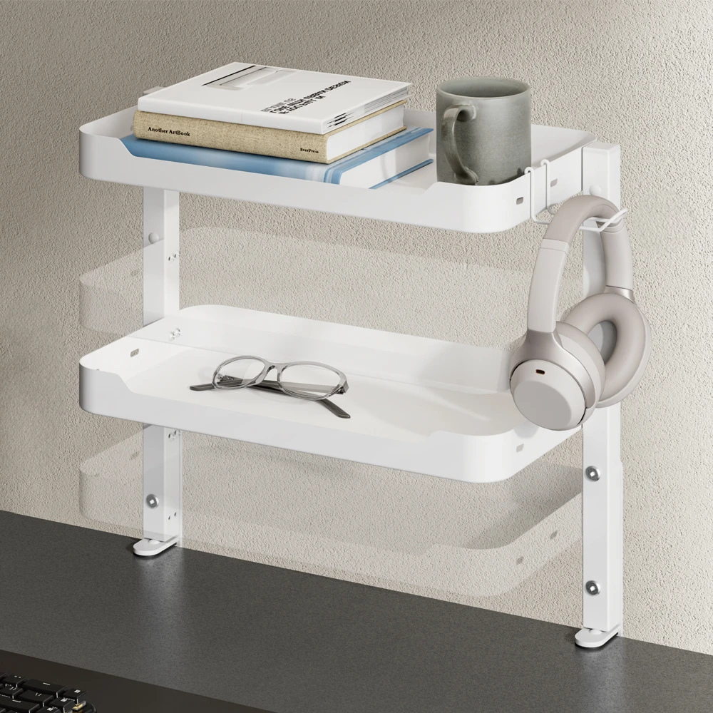 Nadstawka biurkowa Spacetronik SPB-115W – Półka na biurko i pod biurko z regulacją i uchwytem na słuchawki (biały)