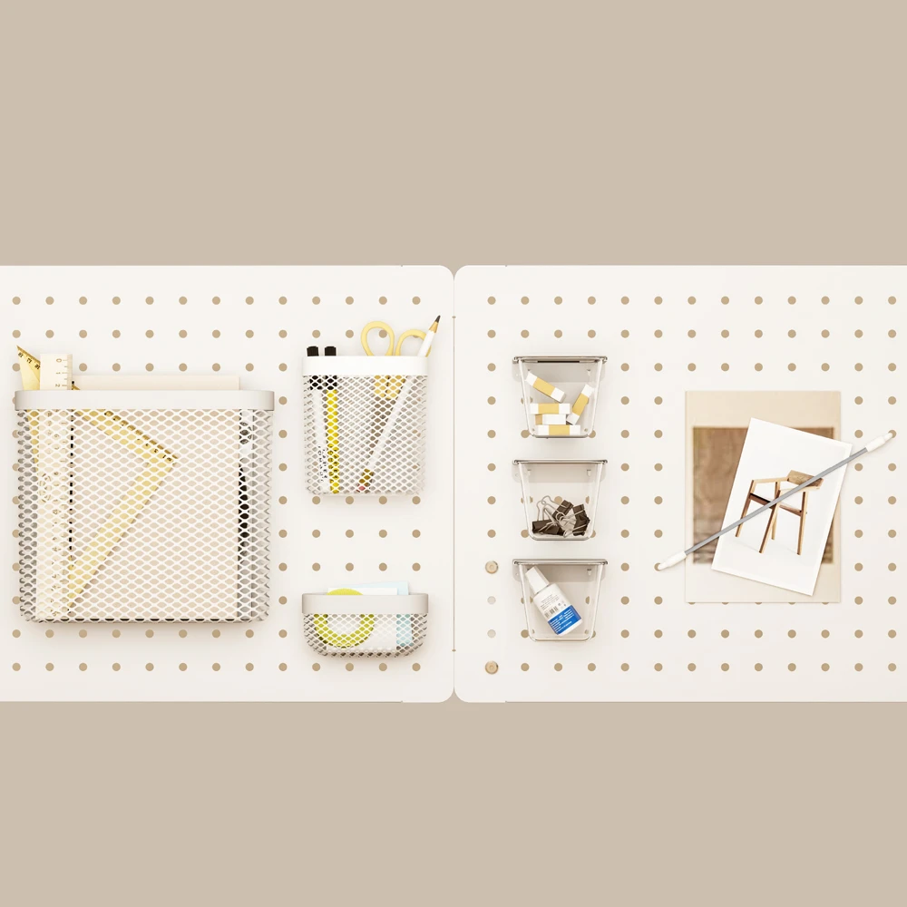 Rozszerz możliwości swojej tablicy narzędziowej dzięki zestawowi tych akcesorii do tablic kompatybilnych z tablicami z serii Spacetronik Holdee. W zestawie znajdziesz trzy koszyki o różnych rozmiarach, trzy pojemniki i elastyczny uchwyt do przechowywania dekoracji, akcesoriów biurowych oraz innych drobnych przedmiotów. To idealne rozwiązanie do domowego biura, warsztatu lub pokoju dziecięcego, które zapewnia funkcjonalność i porządek.
