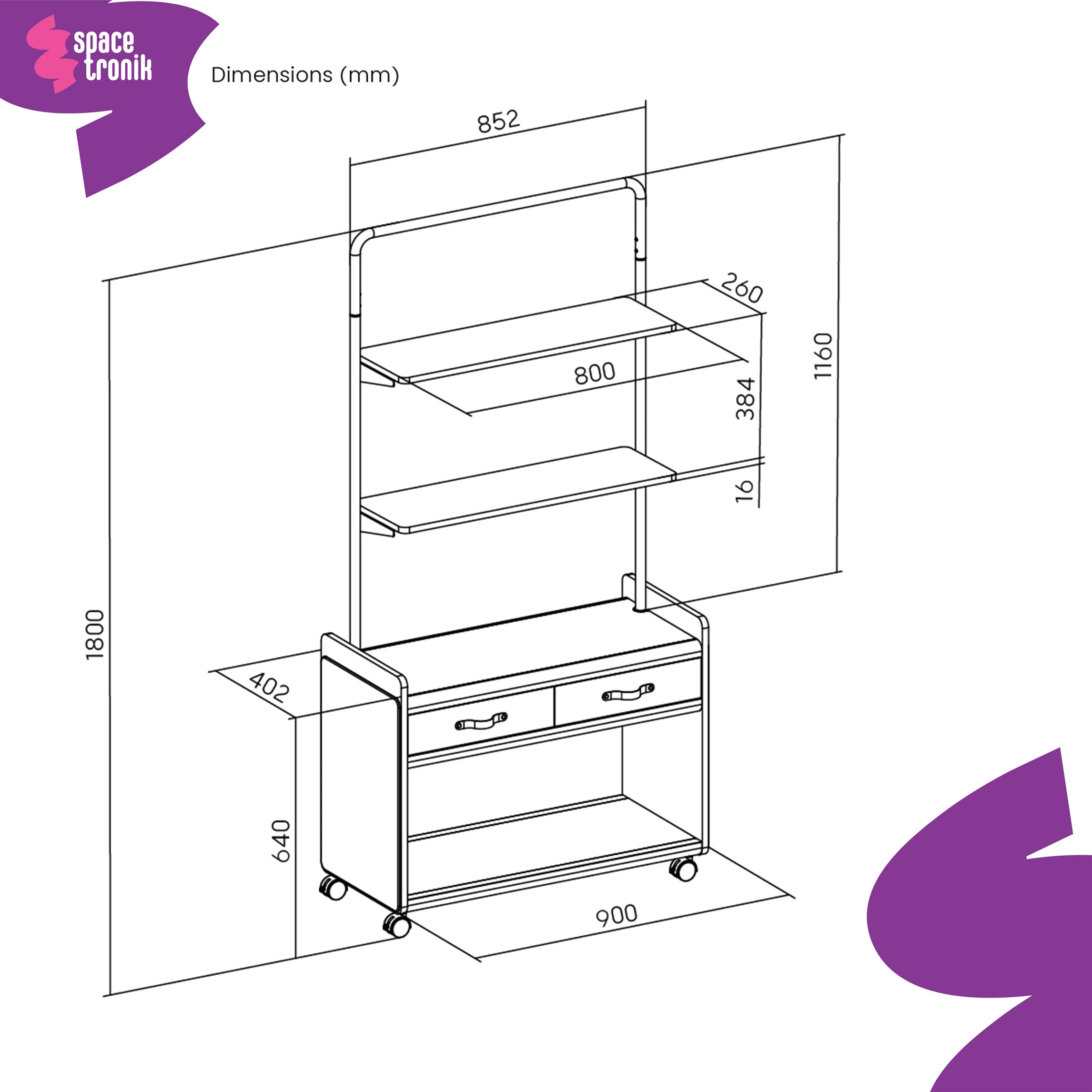 Wielofunkcyjna otwarta szafka na kółkach Spacetronik Frodi