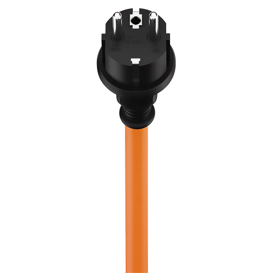Przejściówka sprawdza się idealnie w warunkach zewnętrznych. Dzięki precyzyjnej konstrukcji, klasie szczelności IP44 i klapce zabezpieczającej gniazdo CEE, chroni przed wilgocią i zabrudzeniami. Jasnopomarańczowy kabel jest dobrze widoczny na trawie czy żwirze, co zwiększa łatwość poruszania się na kempingu, parkingu lub działce. To praktyczne rozwiązanie w terenie, podczas biwaków, w ogrodzie czy na postoju.