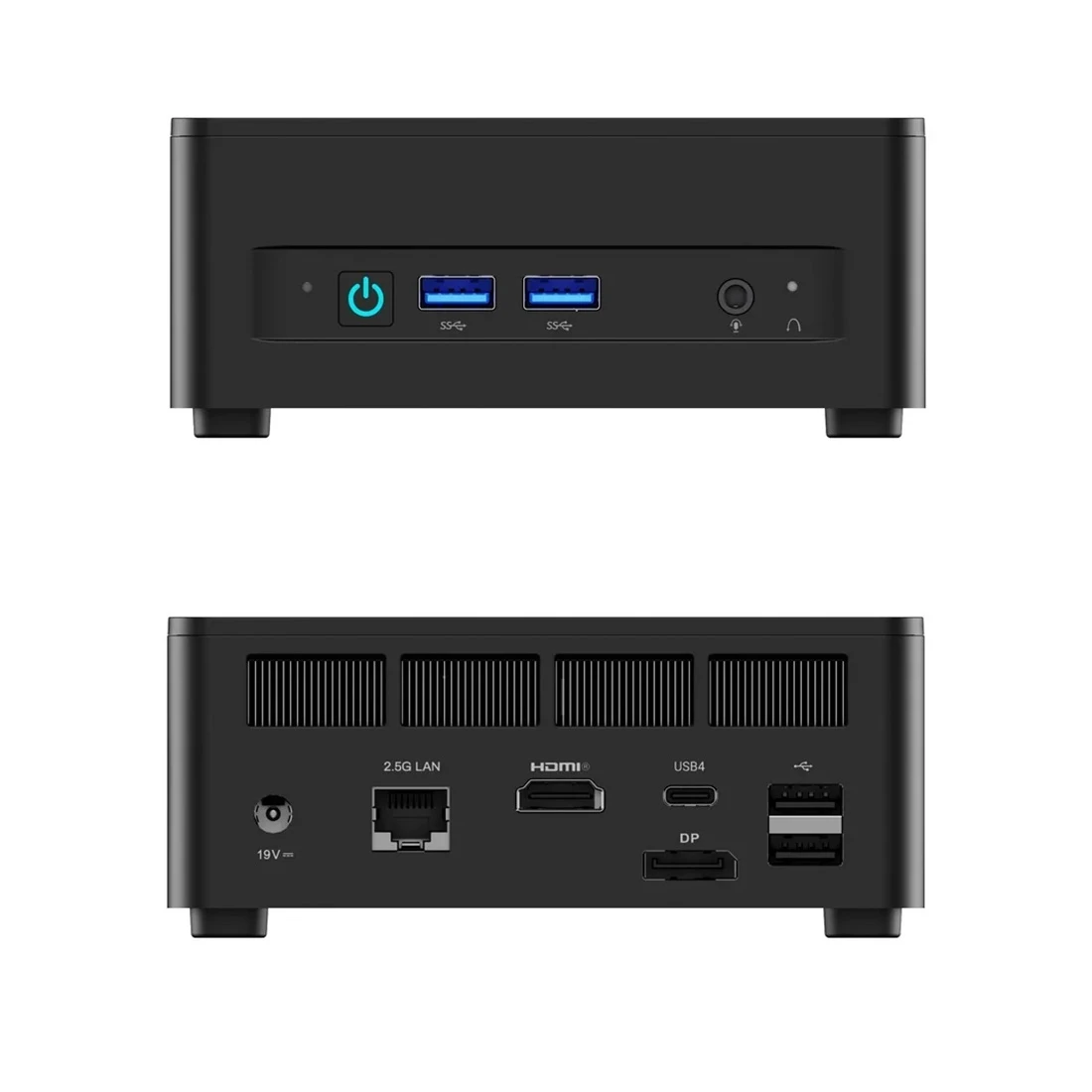 Minikomputer Minisforum UM760 Slim pomimo swojej małej budowy jest urządzeniem bardzo wielofunkcyjnym. Wszystko z uwagi na mnogość portów znajdujących się zarówno z przodu, jak i z tyłu urządzenia. Znajdziesz w nim następujące wejścia / wyjścia:
