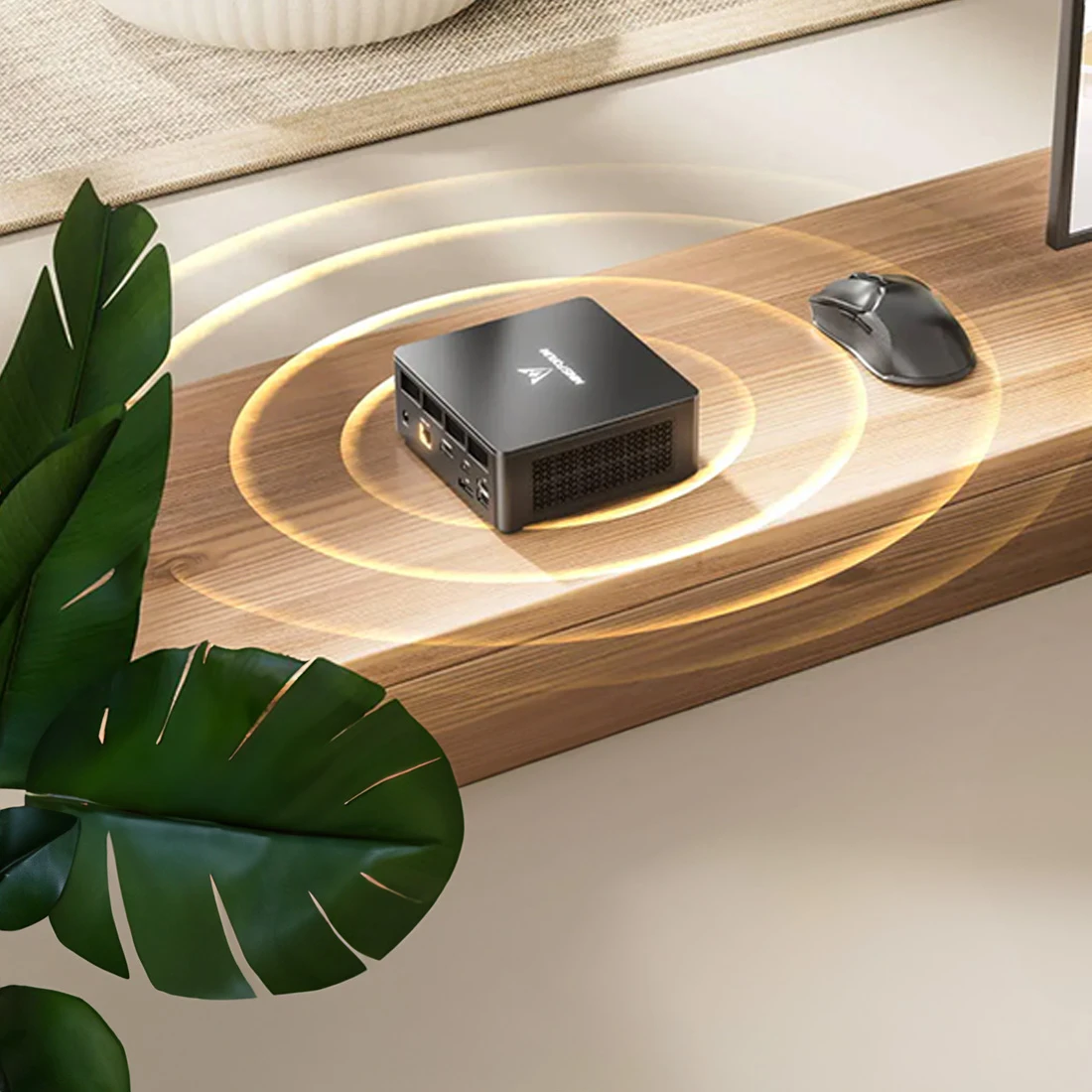 Komputer Minisforum UM760 Slim posiada kompaktowy system chłodzenia z przemianą fazową, który wykorzystuje zaawansowane materiały termiczne. Potrafią one szybko zmieniać stan skupienia ze stałego w ciekły. Dzięki temu wydajnie odprowadzają ciepło. W połączeniu z dużym i cichym wentylatorem, jak i trzema miedzianymi rurkami cieplnymi zapewnia stabilną wydajność na poziomie 60 W. Urządzenie nie będzie się przesadnie przegrzewać niezależnie od tego, czy pracujesz, czy też grasz. Dodatkowo pamięć RAM i Dyski SSD także korzystają z systemu aktywnego chłodzenia. Obniż temperaturę nawet o 25% i przedłuż tym samym żywotność swojego komputera. Cały system chłodzenia emituje dźwięki nieprzekraczające 35 dB, czyli średniego poziomu hałasu w bibliotece.