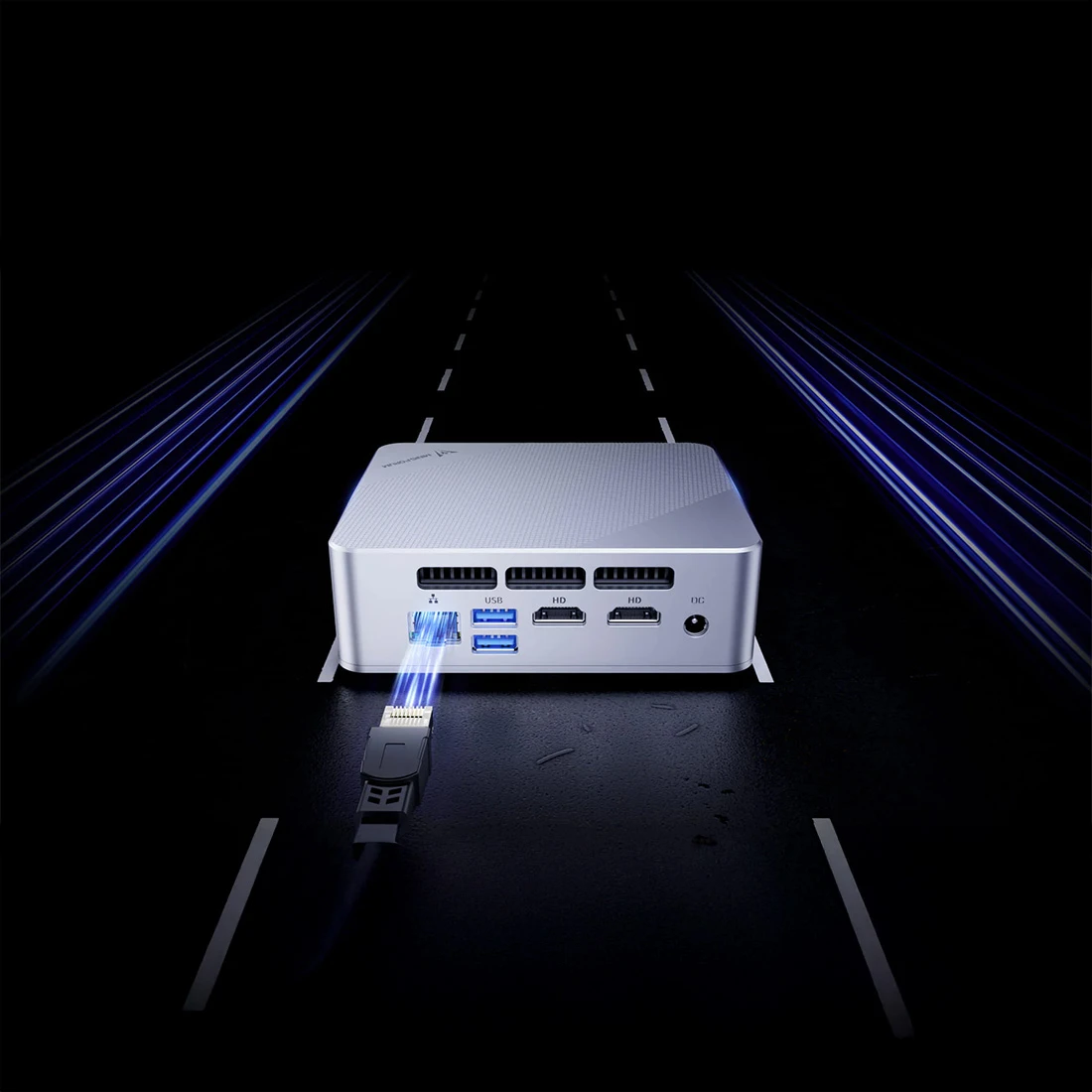Komputer Minisforum UN150P posiada kompaktowy system składający się z wydajnego wentylatora. Wspomagany jest przez zestaw kratek wentylujących po bokach urządzenia. Cały system chłodzenia emituje dźwięki nieprzekraczające 37 dB, czyli średniego poziomu hałasu w bibliotece. Co więcej system chłodzenia jest na tyle energooszczędny, że zużycie energii całego komputera mieści się w 6W. Dzięki temu będzie to idealne rozwiązanie, które pomoże Ci zmniejszyć rachunki za prąd.