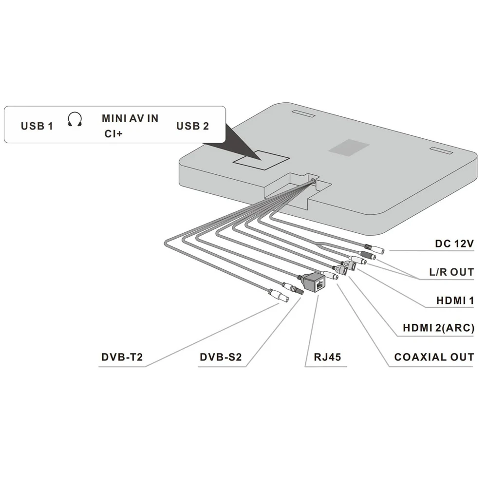 - Wszechstronne złącza – HDMI, USB, LAN, DVB-T2/S2/C, CI+, AV IN, audio out i więcej.
