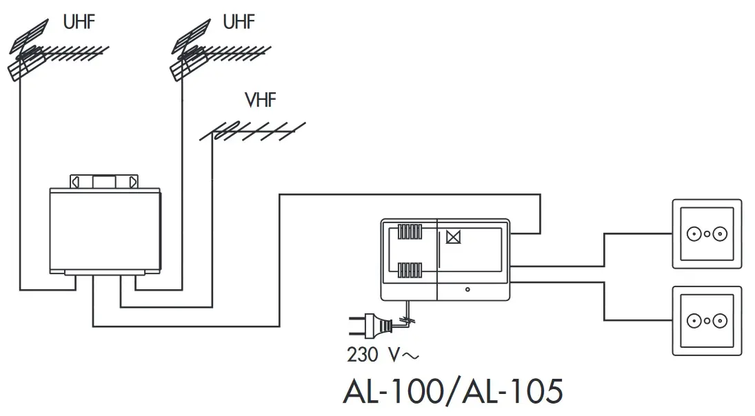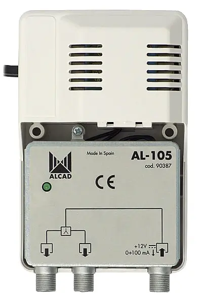 Zasilacz AL-105 stosowany jest do zasilania wzmacniaczy Alcada montowanych na maszcie antenowym zasilanych napięciem 12V