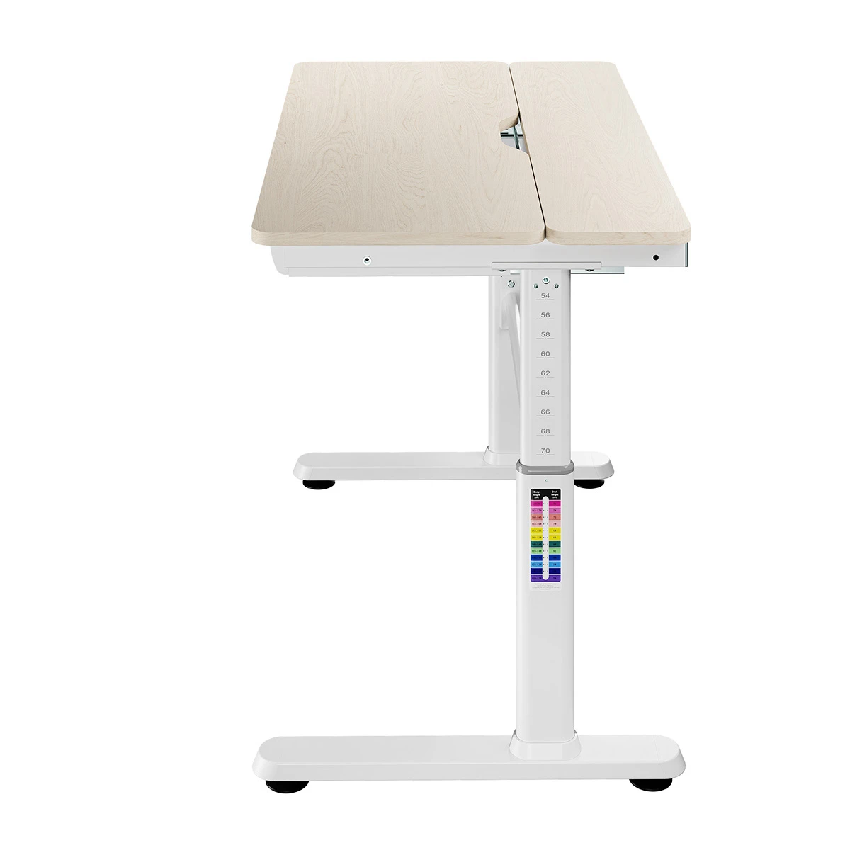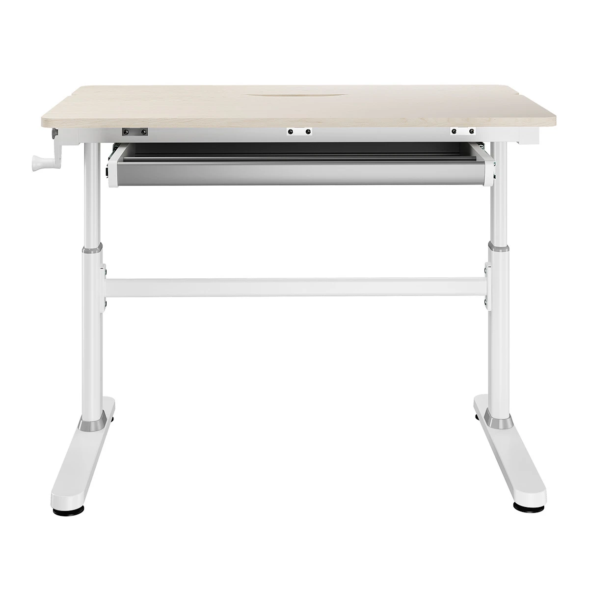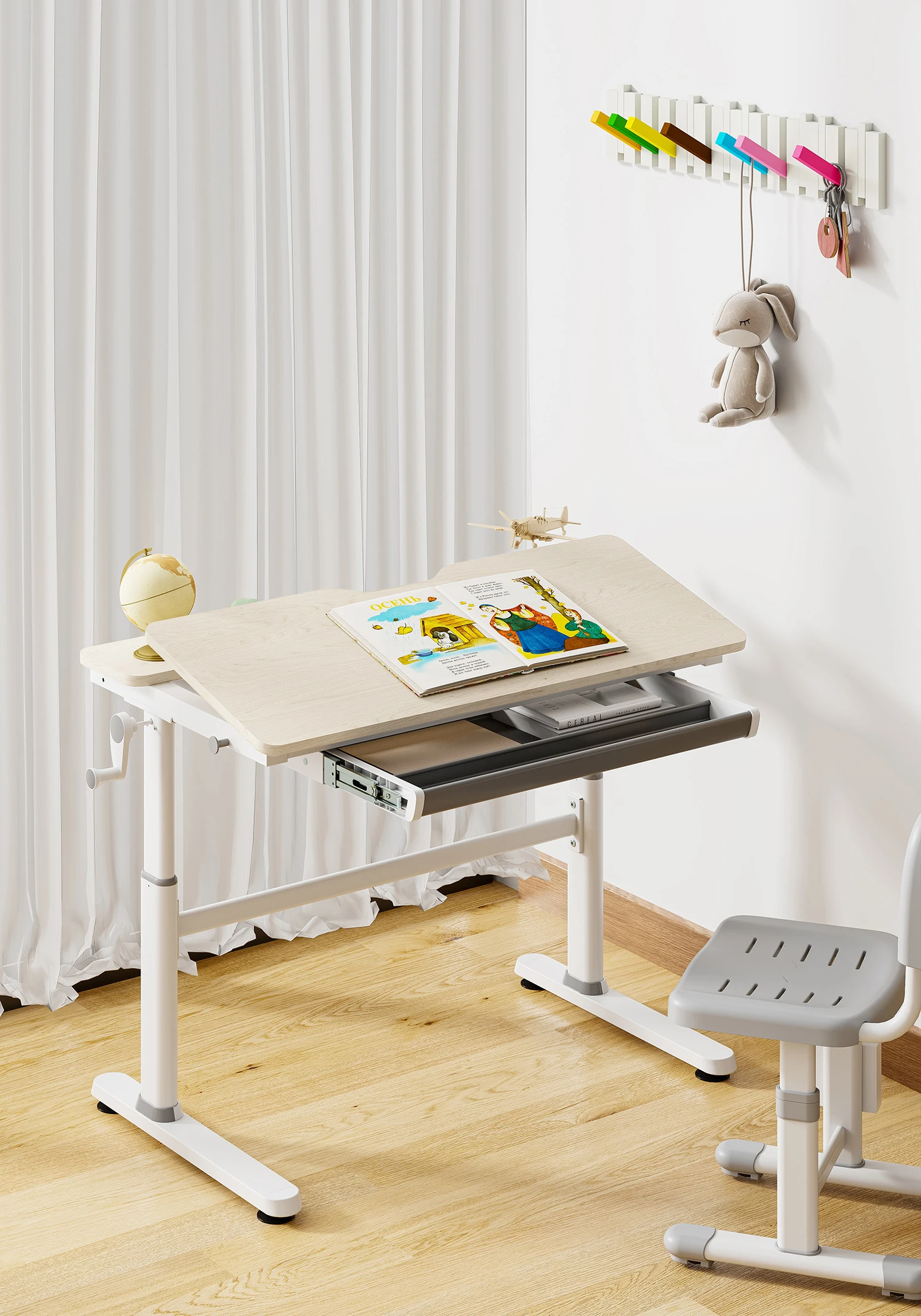 Dzieci mogą łatwo dostosować wysokość biurka do swoich potrzeb, korzystając z lekkiej i płynnej ręcznej korby, która nie jest montowana na stałe - można ją wyjąć zaraz po dostosowaniu wysokości. Wysokość blatu jest regulowana w zakresie od 54 cm do 76 cm. W praktyce to oznacza, że użytkownikiem biurka może być zarówno sześciolatek, jak i uczeń szkoły podstawowej.