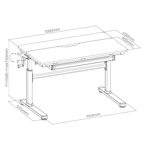 Komfort jest niezbędny i bezpośrednio wpływa na to, jakie Twoje dziecko będzie miało podejście do nauki. Biurko zostało zaprojektowane tak, aby pasowało do każdego. Od przedszkola do szkoły, to biurko dostosowuje się do wzrostu dziecka na każdym etapie. Ta ergonomiczna konstrukcja to połączenie krzykliwego i prostego biurka z odpowiednimi udogodnieniami, które sprawią, że Twoje dziecko znajdzie wymówkę, by korzystać z biurka przy każdej nadarzającej się okazji. Spacetronik XD tworzy zdrowe środowisko do nauki i zabawy, umożliwiając dziecku dopasowanie odpowiedniej, ergonomicznej wysokości blatu. Za pomocą wyjmowanej ręcznej korby można regulować wysokość blatu biurka w zakresie 540 mm dla niskich dzieci do 760 mm dla tych wyższych.
