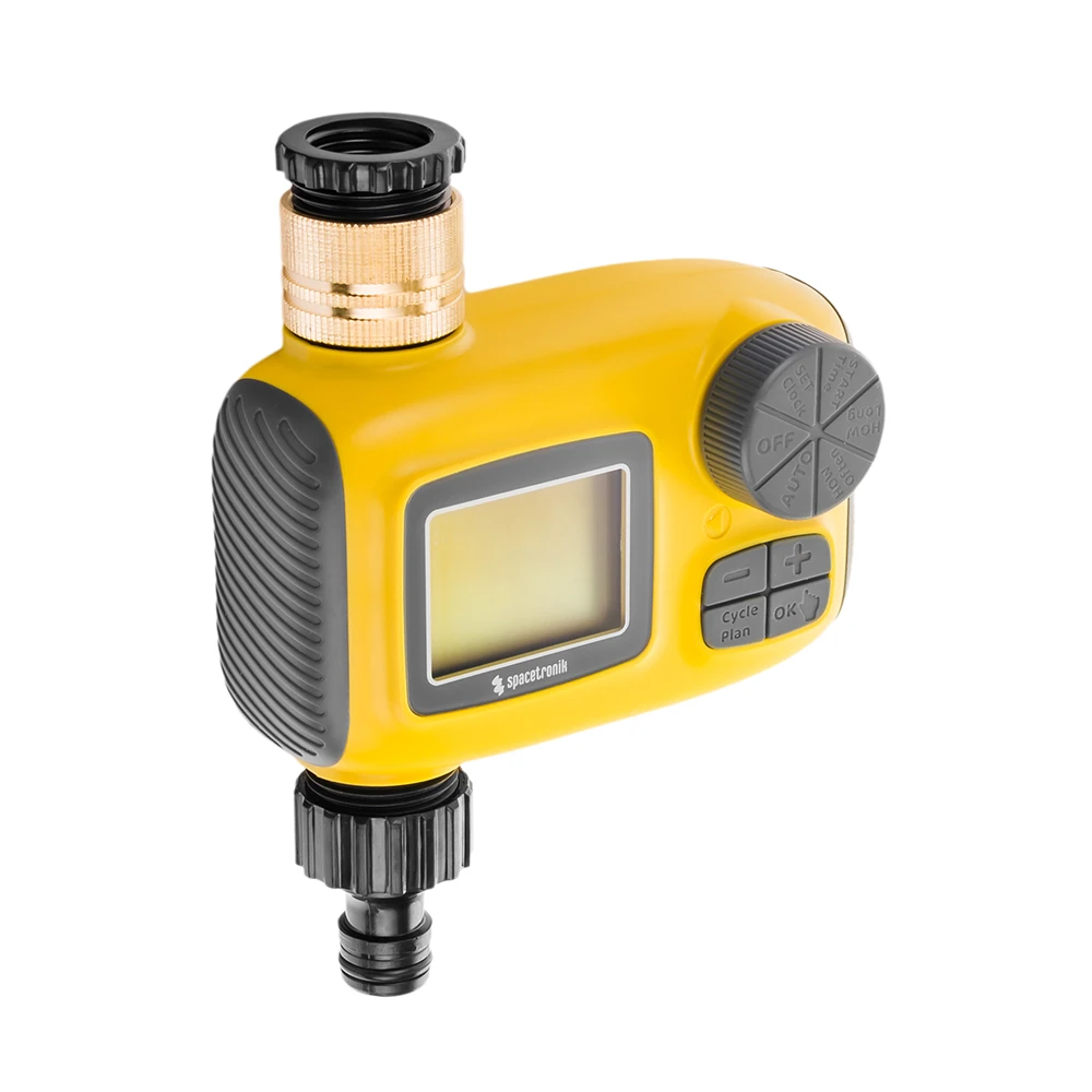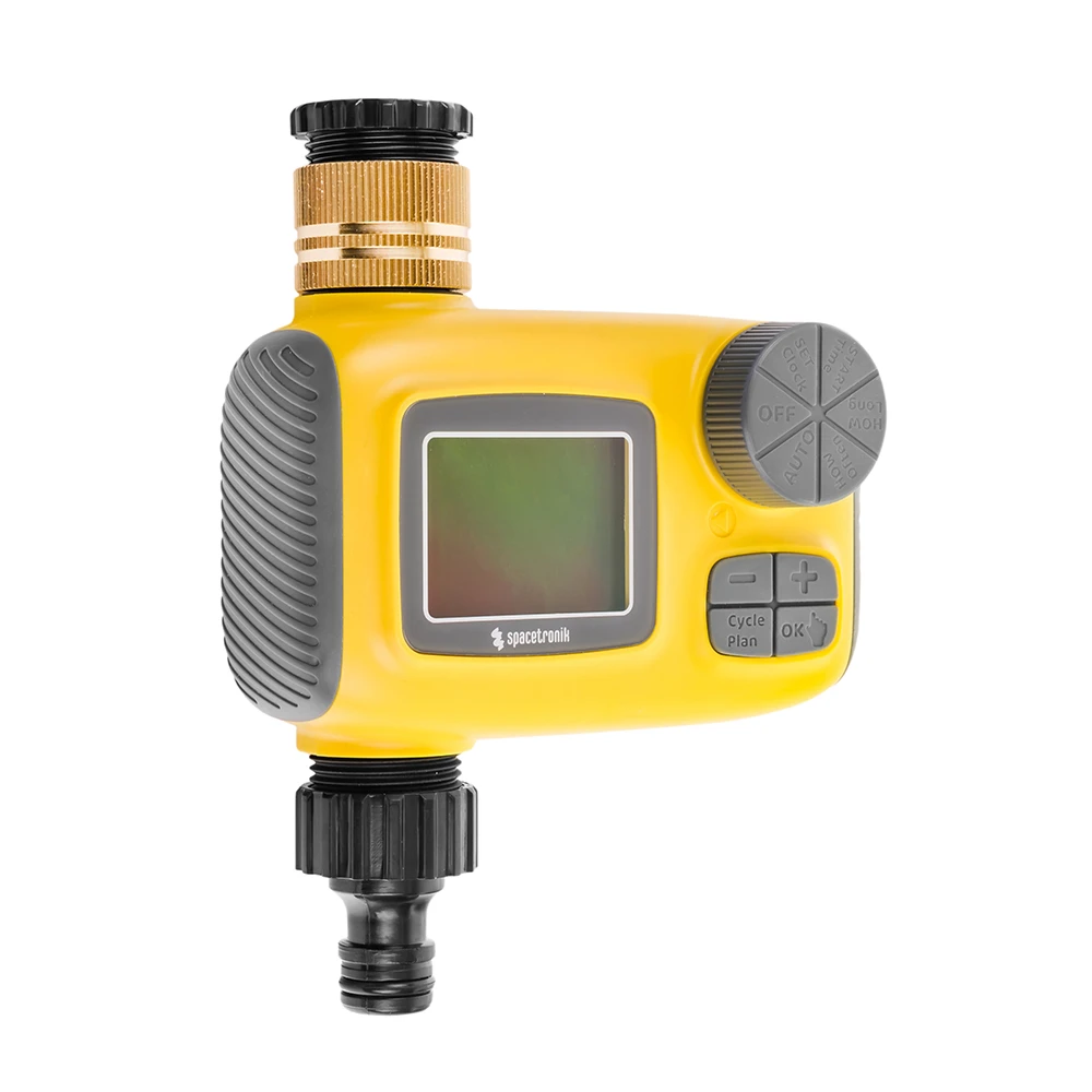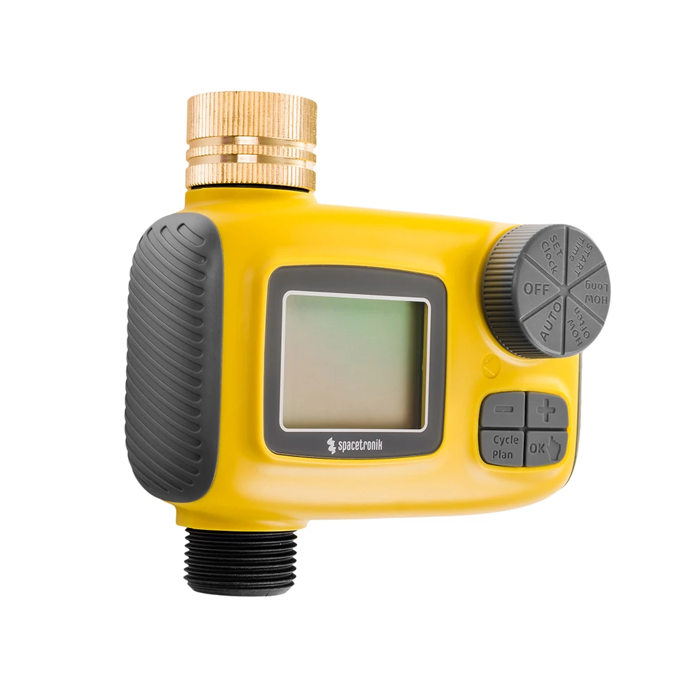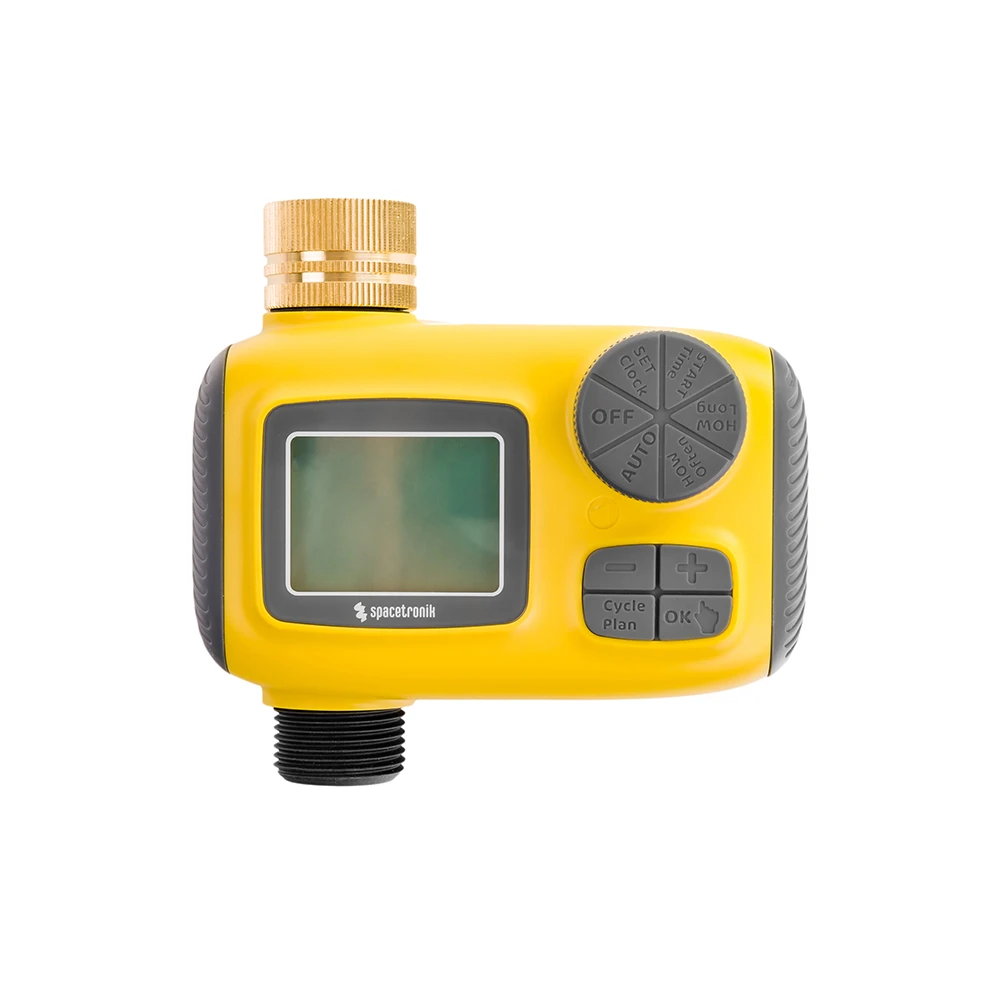 Spacetronik SPGC41 umożliwia pełną personalizację harmonogramu nawadniania. Możesz ustawić aż 3 niezależne programy, z precyzyjnie określonymi godzinami i długością podlewania – od kilku minut do niemal całej doby. Niezależnie od tego, czy potrzebujesz intensywnego podlewania trawnika, czy delikatnego nawadniania roślin w szklarni – ten zawór wodny zrobi to za Ciebie, dokładnie wtedy, kiedy trzeba.