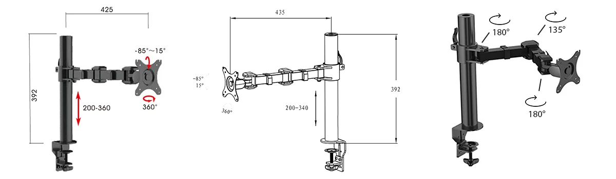 - Rozsuwane ramiona- uchwyt można regulować w każdej płaszczyźnie