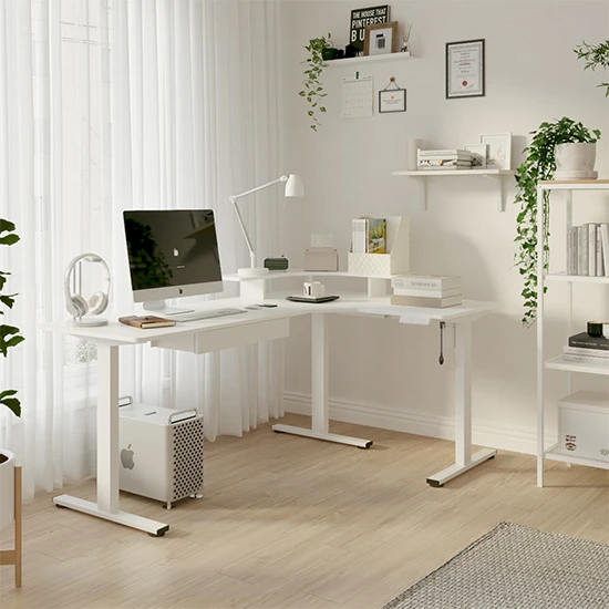 Biurko elektryczne z blatem w kształcie litery L
