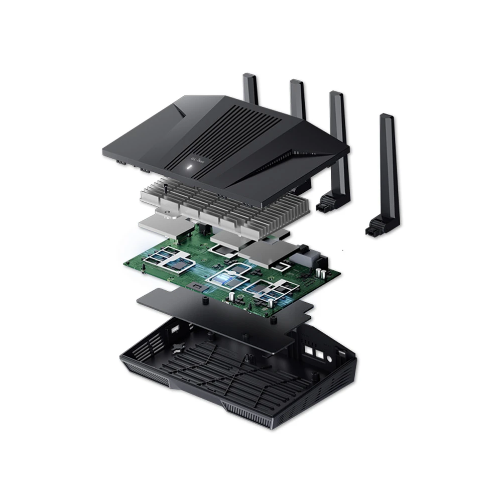 - 4 zewnętrzne anteny dual-band (2.4 GHz + 5 GHz) – mocny, stabilny sygnał Wi-Fi w całym domu.