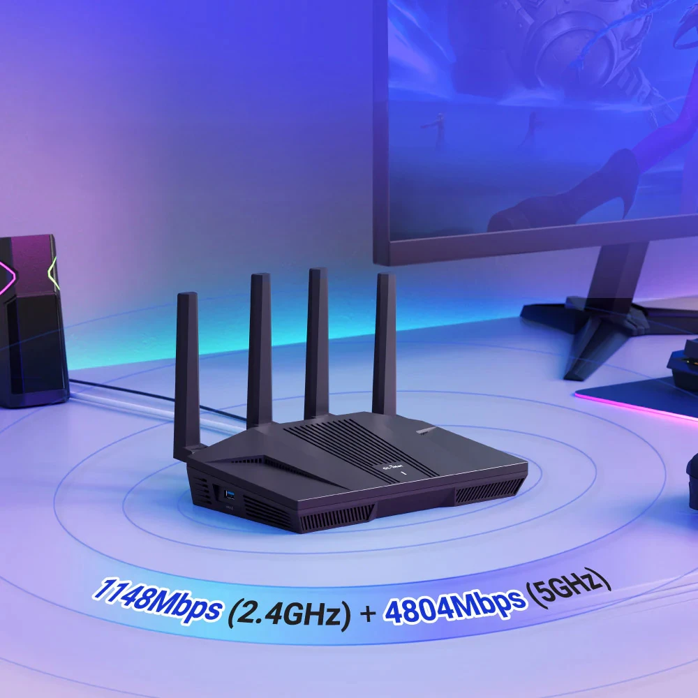- Nowoczesny standard Wi-Fi 6 (802.11ax) – maksymalna łączna prędkość bezprzewodowa do 5952 Mbps: 1148 Mbps w paśmie 2.4 GHz i 4804 Mbps w paśmie 5 GHz.