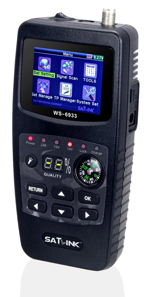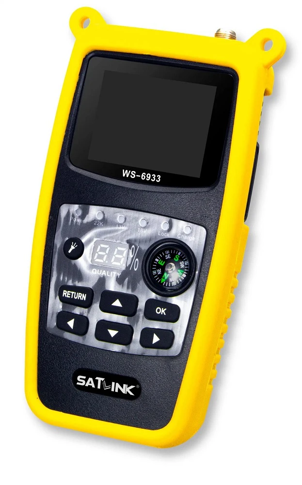 Prosty miernik sygnału satelitarnego firmy Satlink model WS-6933 HD Compact z kolorowym wyświetlaczem LCD pozwalający łatwo i precyzyjnie ustawić antenę satelitarną na właściwego satelitę. Miernik posiada wpisane kilkanaście pozycji satelitarnych (satelity + transpondery) dodatkowo jest możliwość edycji każdego parametru. Model WS-6933 HD posiada pomiar kanałów DVB-S2 - HD.
