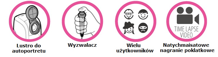 Aby tworzenie autoportretu było jeszcze lepsze i prostsze w zestawie zawarte jest lusterko przykręcane do obiektywu aby lepiej uchwycić siebie podczas robienia zdjęć. Także posiada wyzwalacz, dzięki któremu mamy możliwość robić zdjęcie kiedy chcemy. Wystarczy go podłączyć do aparatu i kliknąć. Aparat automatycznie konwertuje zdjęcia do poklatkowego wideo!