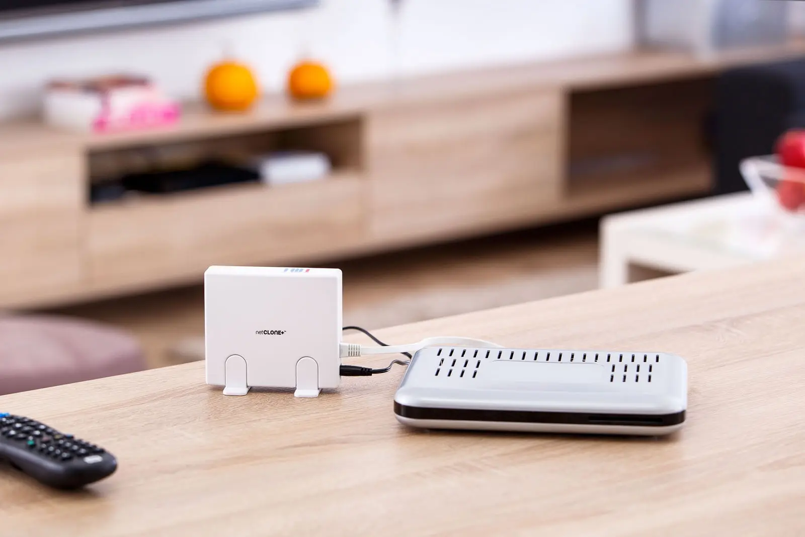 Multiroom, który oferuje Twoja platforma cyfrowa to zaledwie początek. Dzięki netCLONE+ możesz cieszyć się pełną swobodą w korzystaniu z usługi Multiroom. Podczas gdy Multiroom oferowany przez Twojego operatora umożliwia korzystanie z tej usługi wyłącznie w jednej lokalizacji, dedykowany netCLONE+ pozwala na rozszerzenie usługi Multiroom na kilka niezależnych stref, nieograniczonych przestrzennie. Dzięki wykorzystaniu połączenia WiFi, netCLONE+ stanowi wygodne, bezprzewodowe rozwiązanie, bez konieczności łączenia dekoderów przewodami w danej lokalizacji.