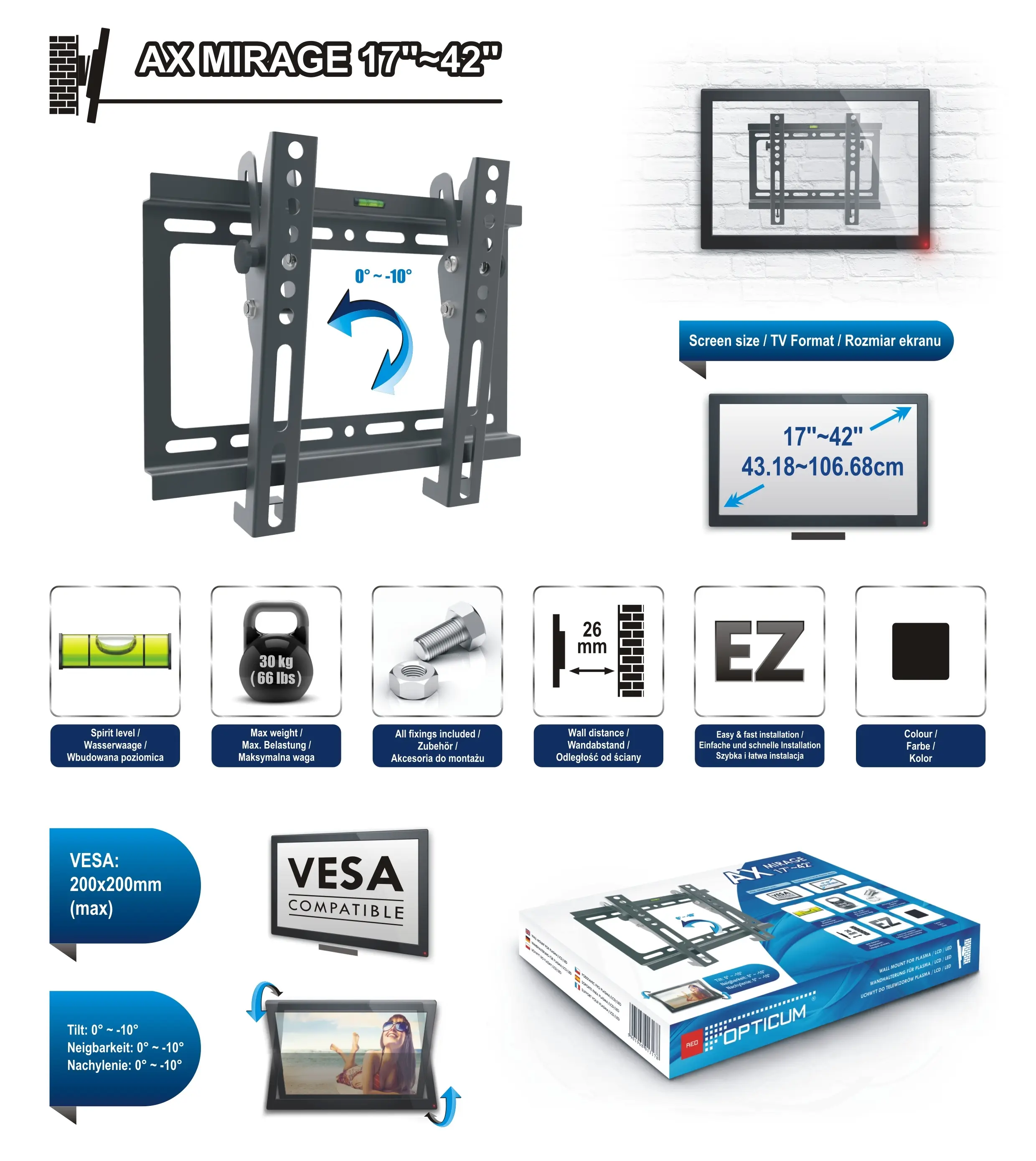 Uchwyt naścienny uniwersalny AX MIRAGE 42 TV LCD/LED/ 17"- 42"